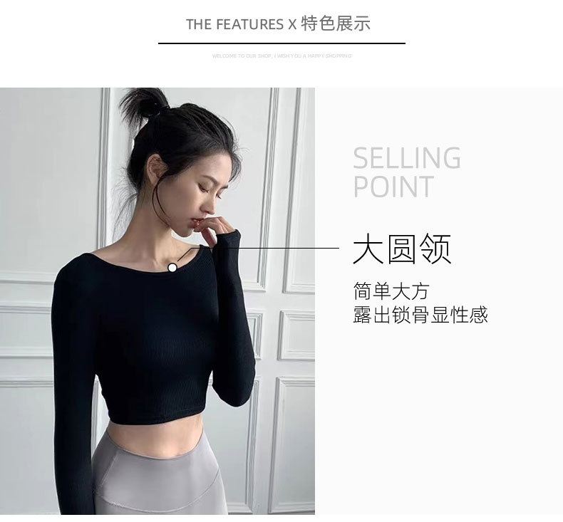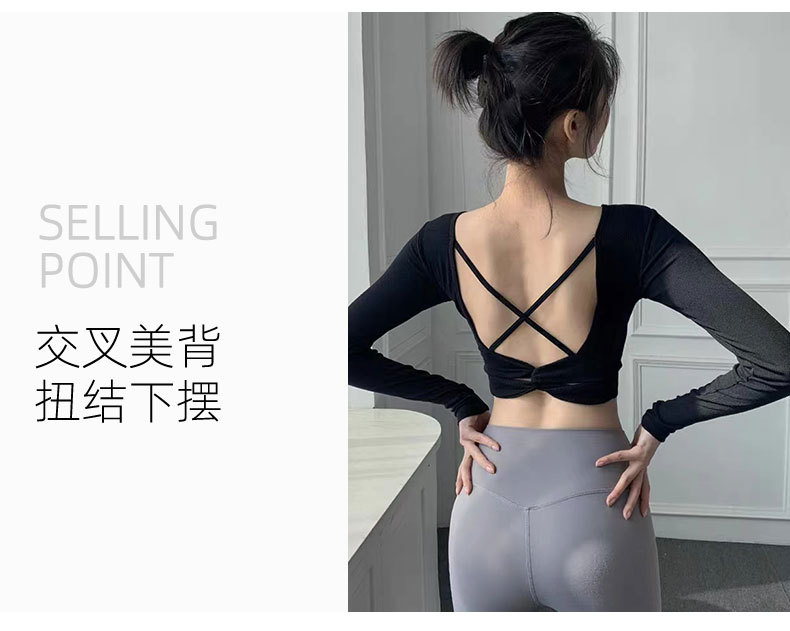 인기 가을 긴팔 요가복, 피트니스 크로스백, 고정형 가슴 패드 요가 탑, 고탄성 스포츠 피트니스복스토어 가기