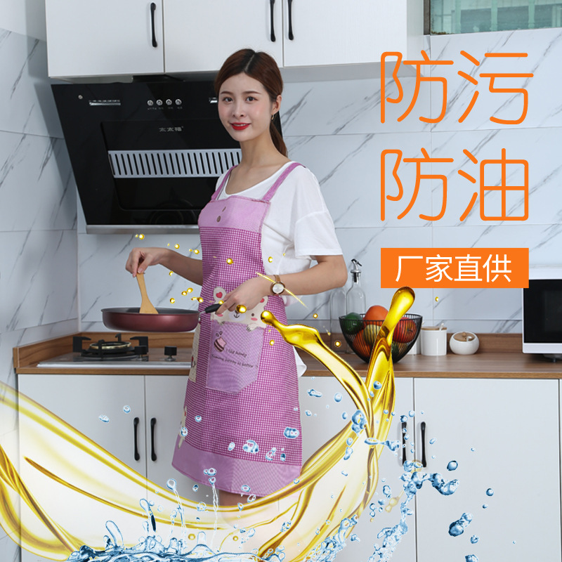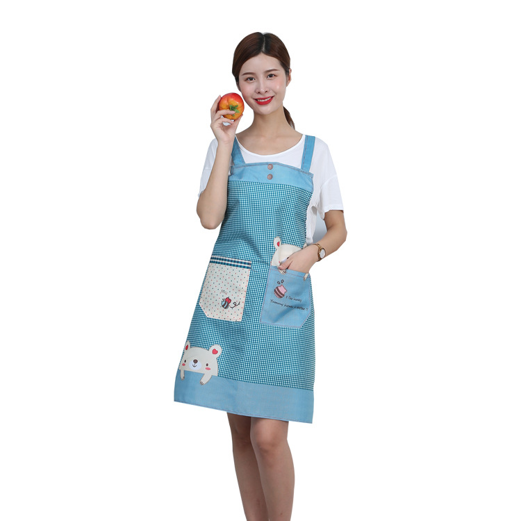 도매 패션 신상품 일본풍 포켓곰 앞치마 여성용 피치벨벳 멜빵형 주방 가정용 민소매 앞치마