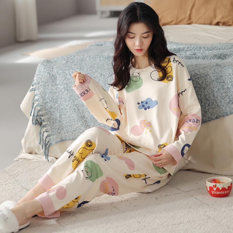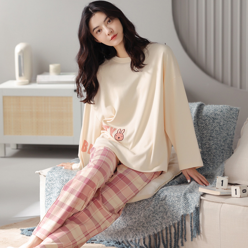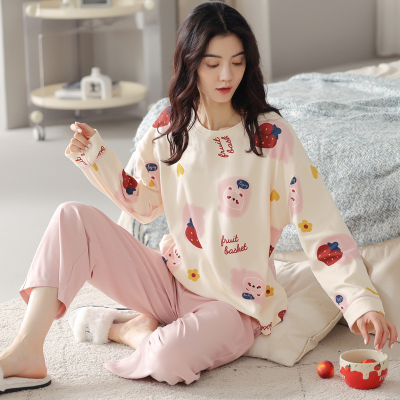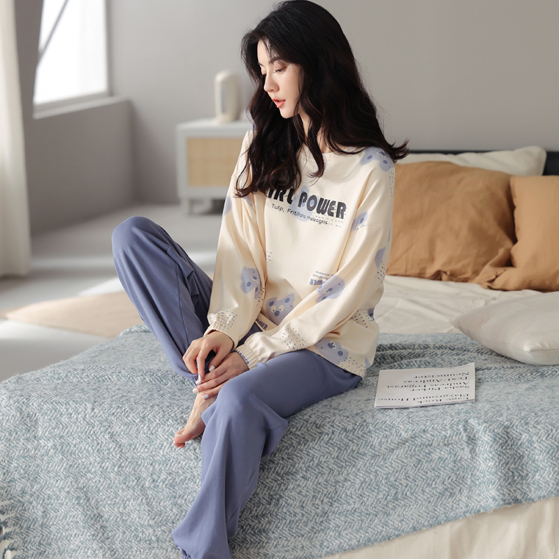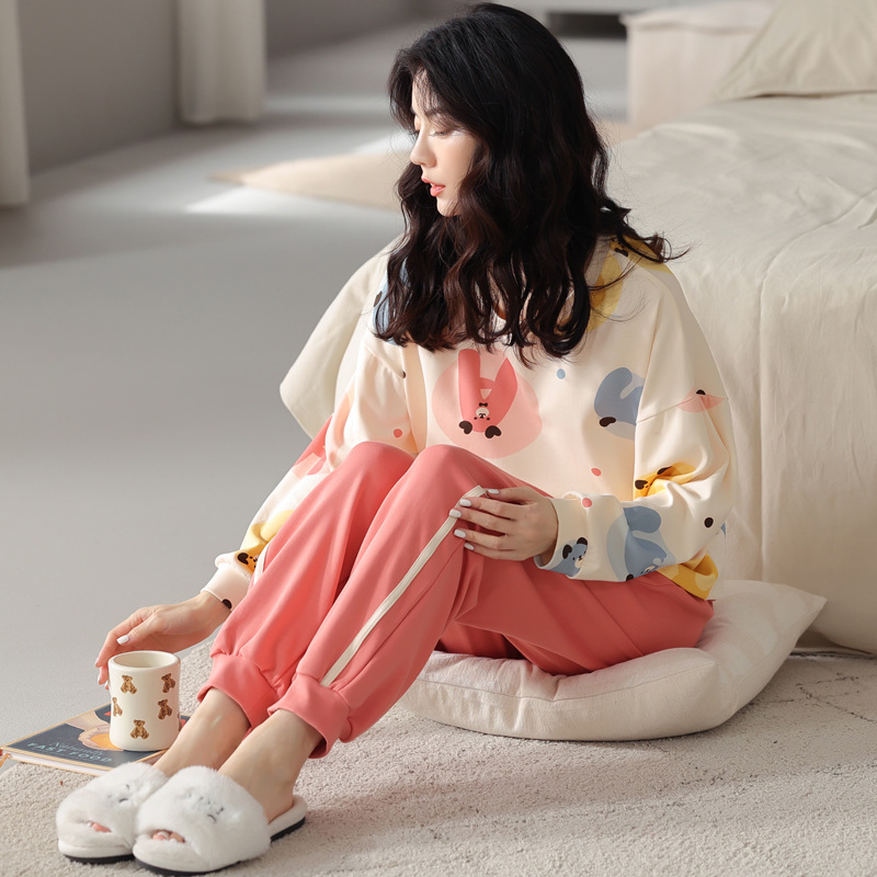 봄과 가을의 공장 직매 새 잠옷 숙녀 빗질면 긴 소매 바지는 가정 옷 밖에서 착용 할 수 있습니다스토어 가기