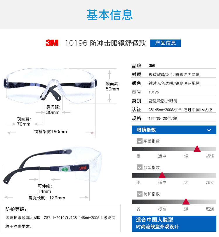 3M 10196 김서림 방지 스크래치 방지 안경 충격 방지 바람 방지 모래 자외선 방지 화학 스플래시 고글스토어 가기