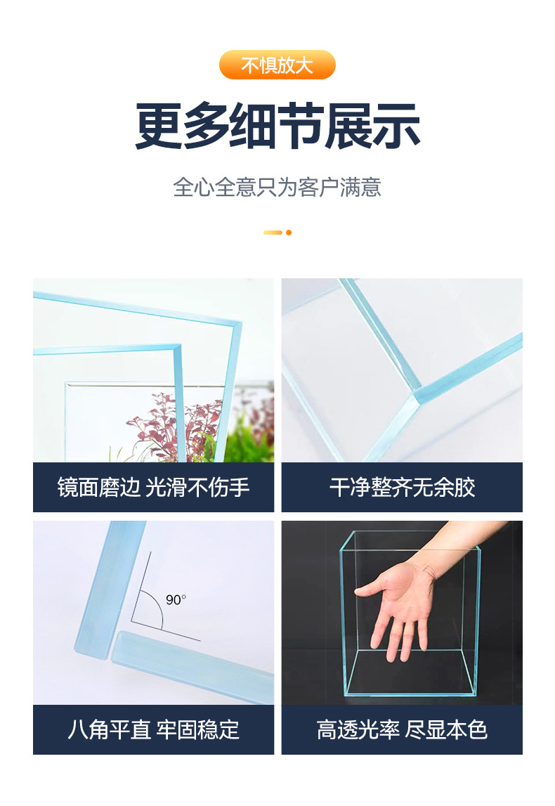 진징 슈퍼 화이트 탱크 직사각형 광장 가구 거실 풍경 물고기 탱크 슈퍼 화이트 유리 물고기 탱크 제조 업체스토어 가기
