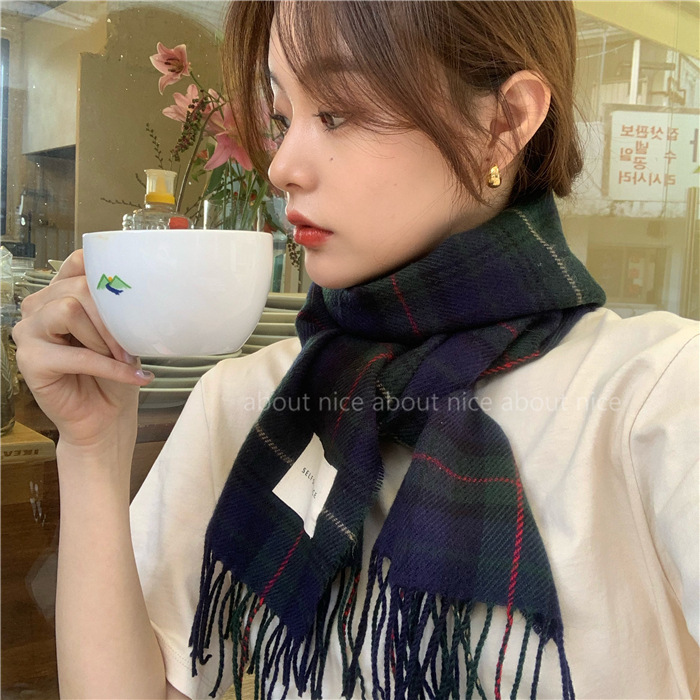 추천 격자 무늬 모조 캐시미어 스카프 여성 겨울 한국어 버전 다목적 양면 남성 긴 따뜻한 이중 목적 다기능 목도리