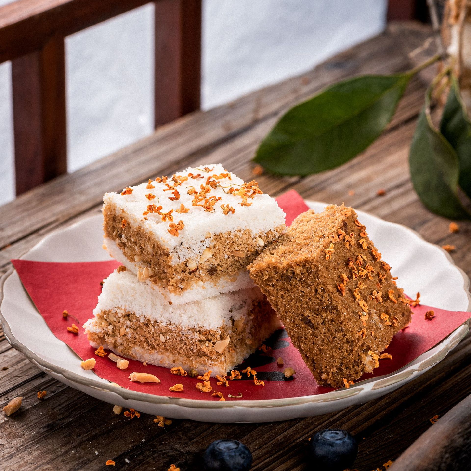 桂花糕共四种口味:原味、红糖、黑芝麻、红豆