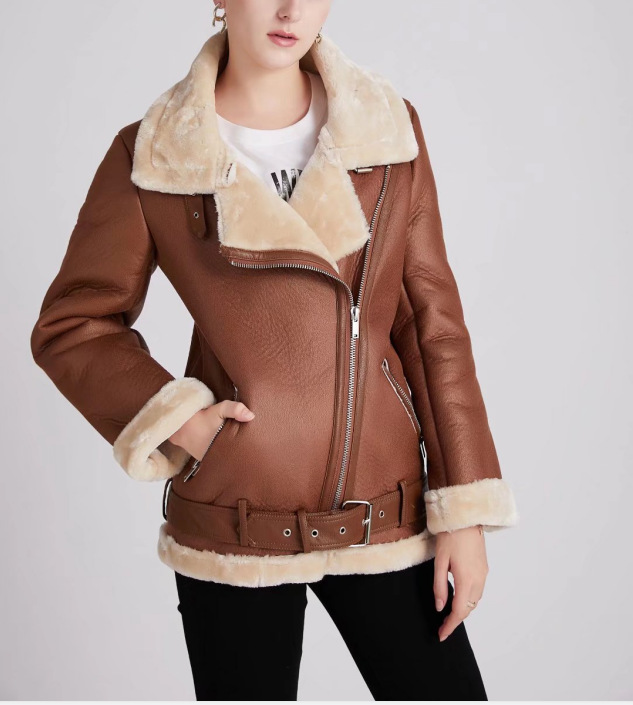 2024 가을 겨울 신상 유럽 및 미국 해외 여성복 스트리트 패션 6색 바이커 가죽 모피 일체형 재킷 w015 086