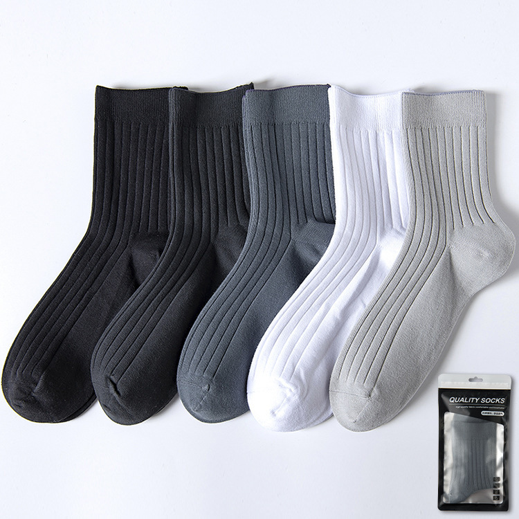 98% 면 양말 남성용 가을 겨울 땀 흡수 탈취제 중간 길이 양말 뼈없는 스티치 남성용 올면 양말 블랙 비즈니스 양말