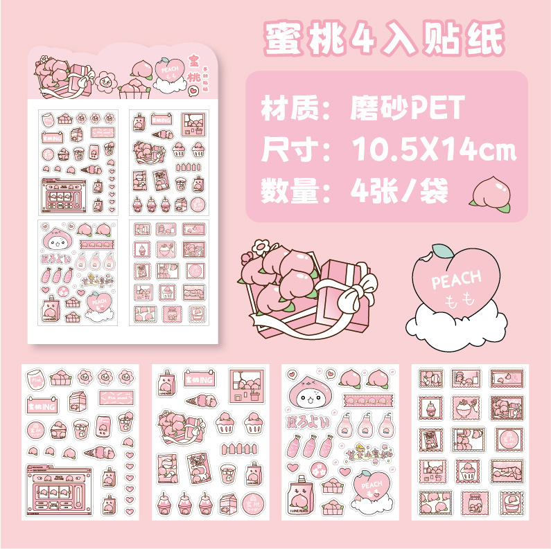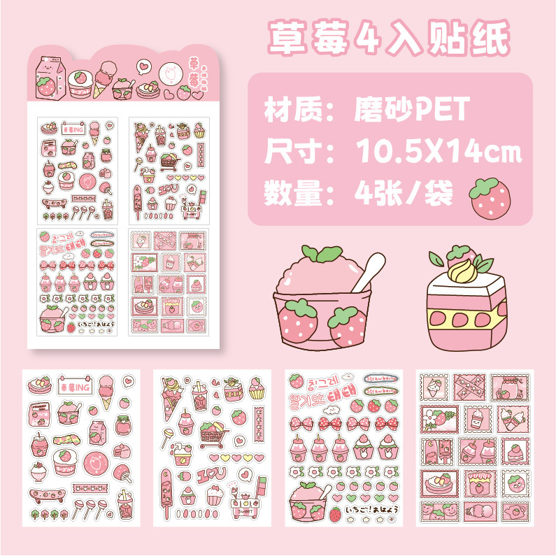 9 리 문구 도매 소녀 하트 귀여운 만화 패턴 4 딸기 벚꽃 젖빛 PET 손 계정 장식 스티커