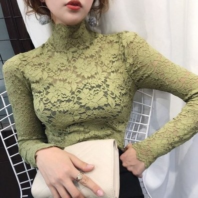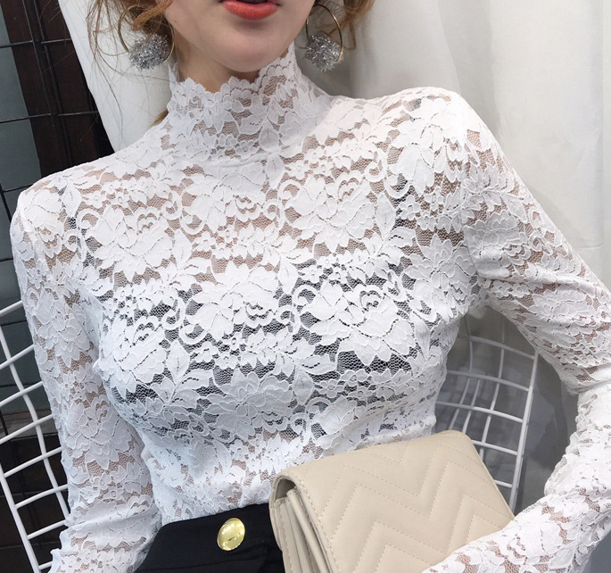가을과 겨울 새로운 슬림핏 레이스 베이스 셔츠 여성용 긴팔 메쉬 내부 탑 여성용 웨스턴 스타일 스몰 셔츠스토어 가기