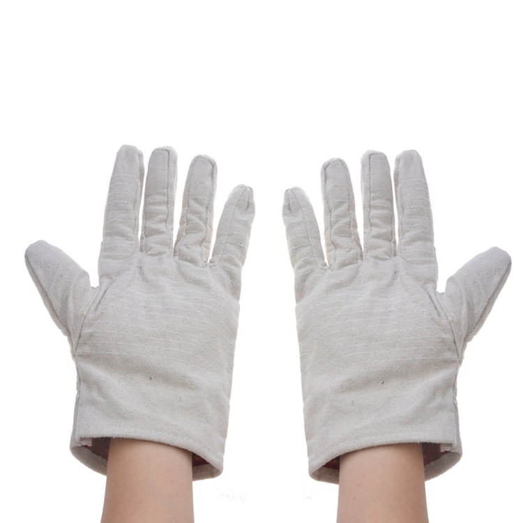 24 줄 흰색 천 장갑 취급 보호 캔버스 노동 보호 장갑 두꺼운 전기 용접 기계 자동차 수리 장갑 도매
