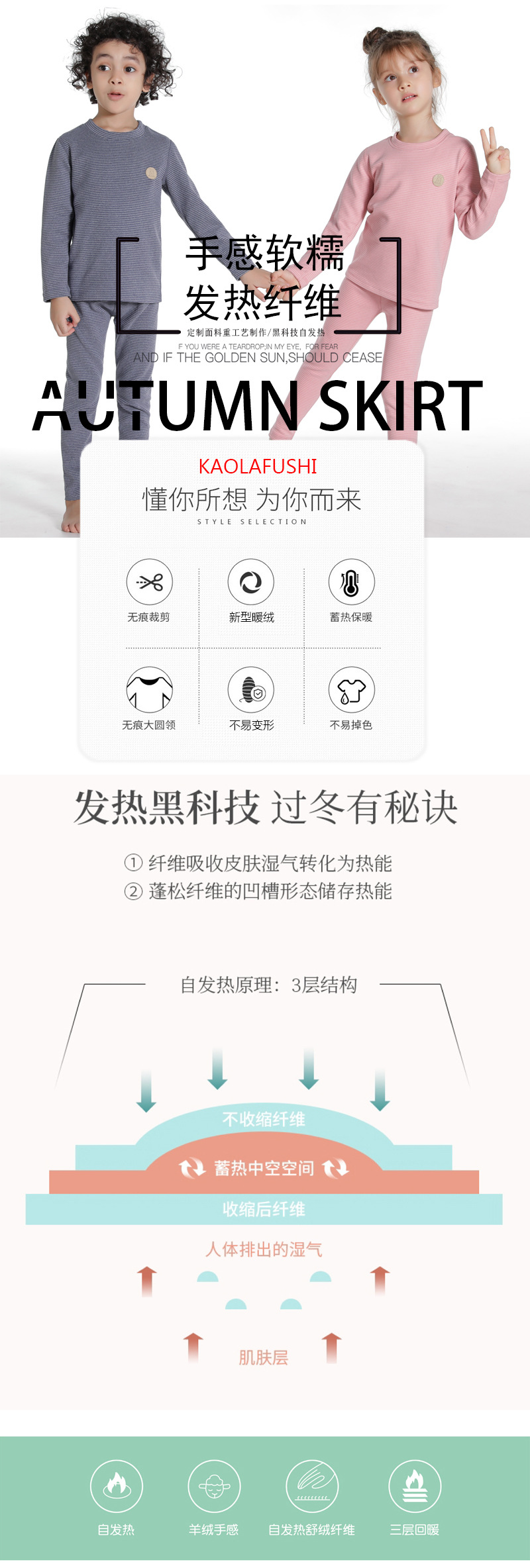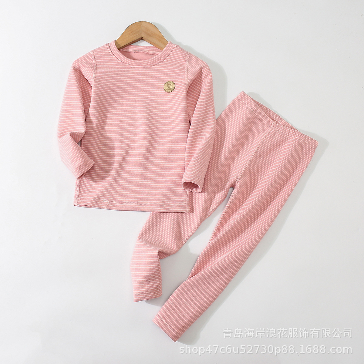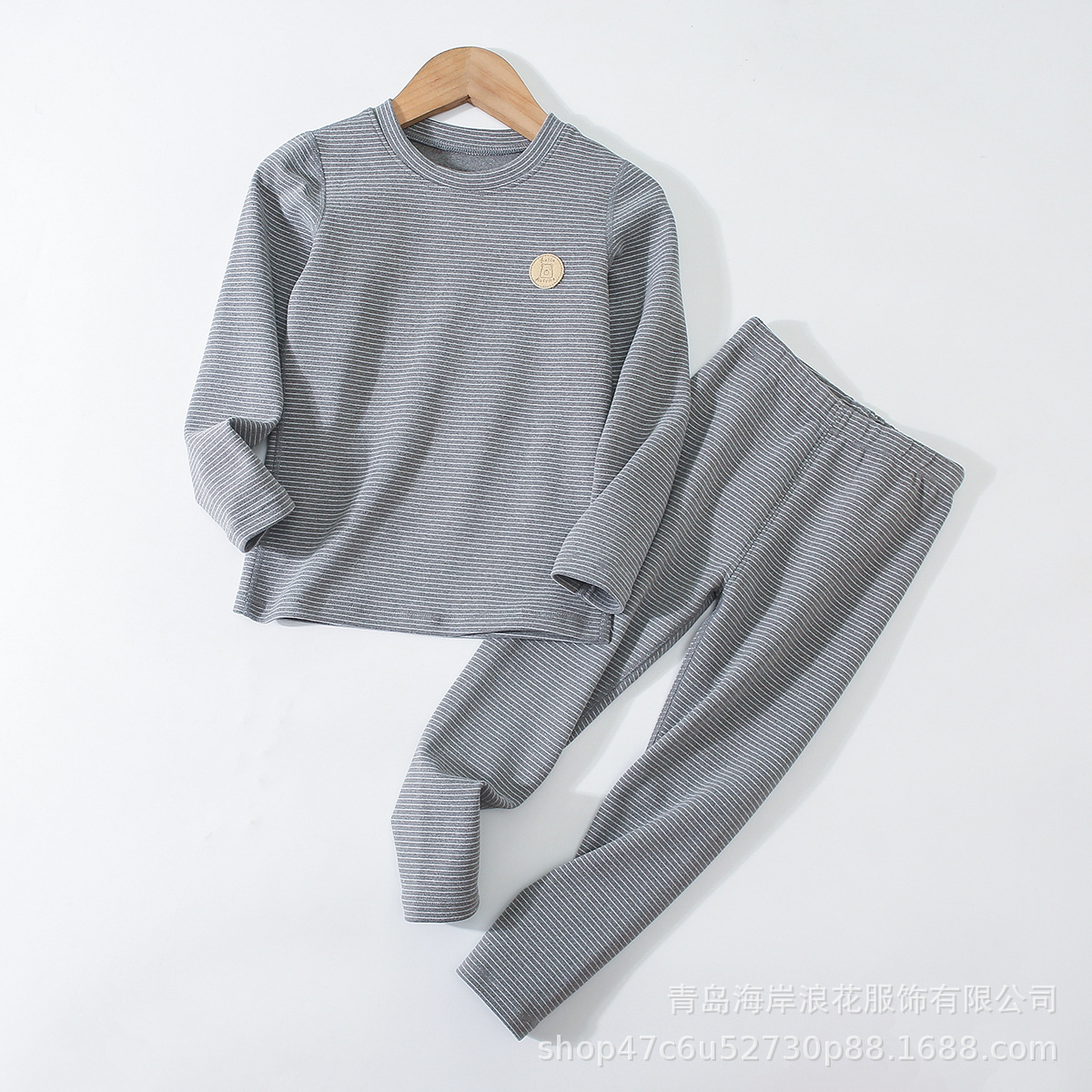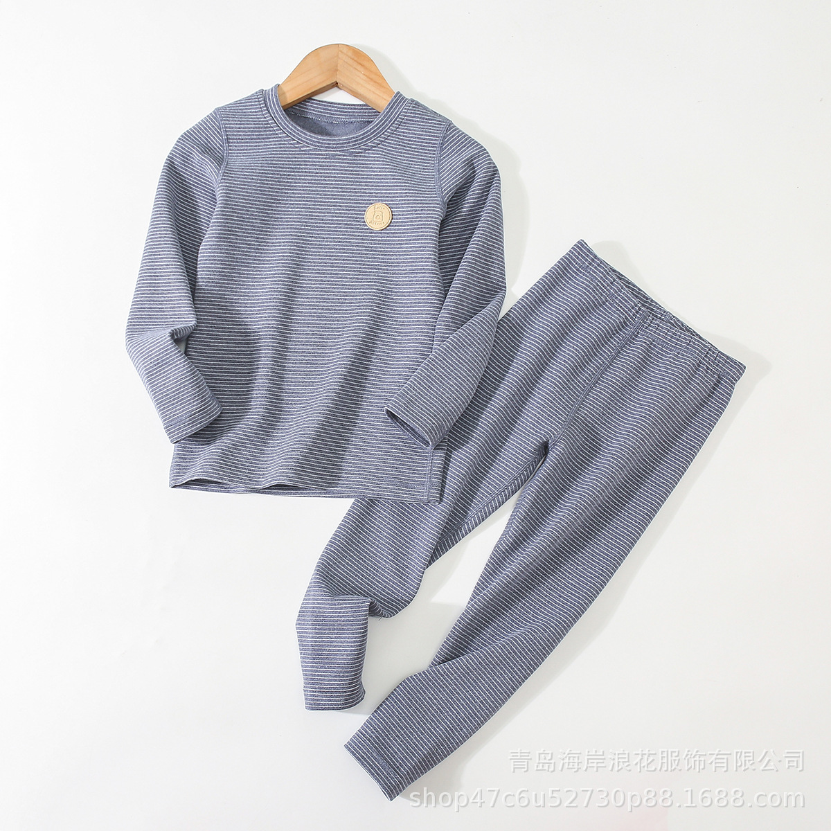 만화 줄무늬 자체 가열 가장자리 업 소년과 소녀 가을 옷 긴 바지 어린이 열 속옷 세트 도매