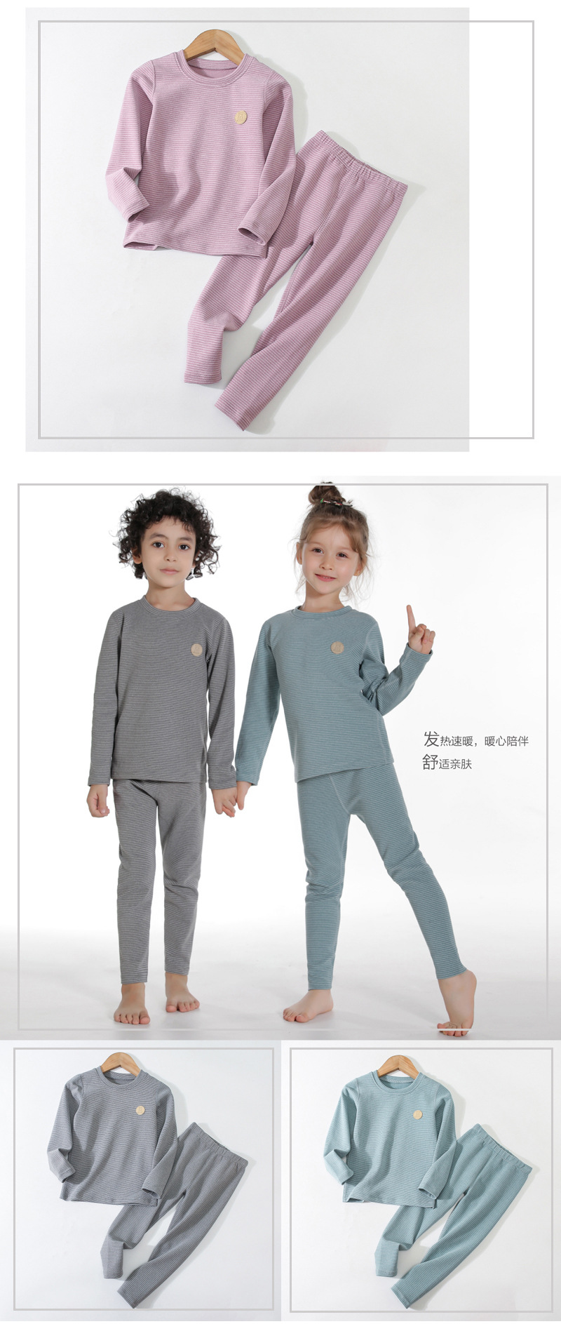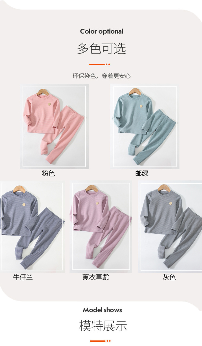 만화 줄무늬 자체 가열 가장자리 업 소년과 소녀 가을 옷 긴 바지 어린이 열 속옷 세트 도매스토어 가기