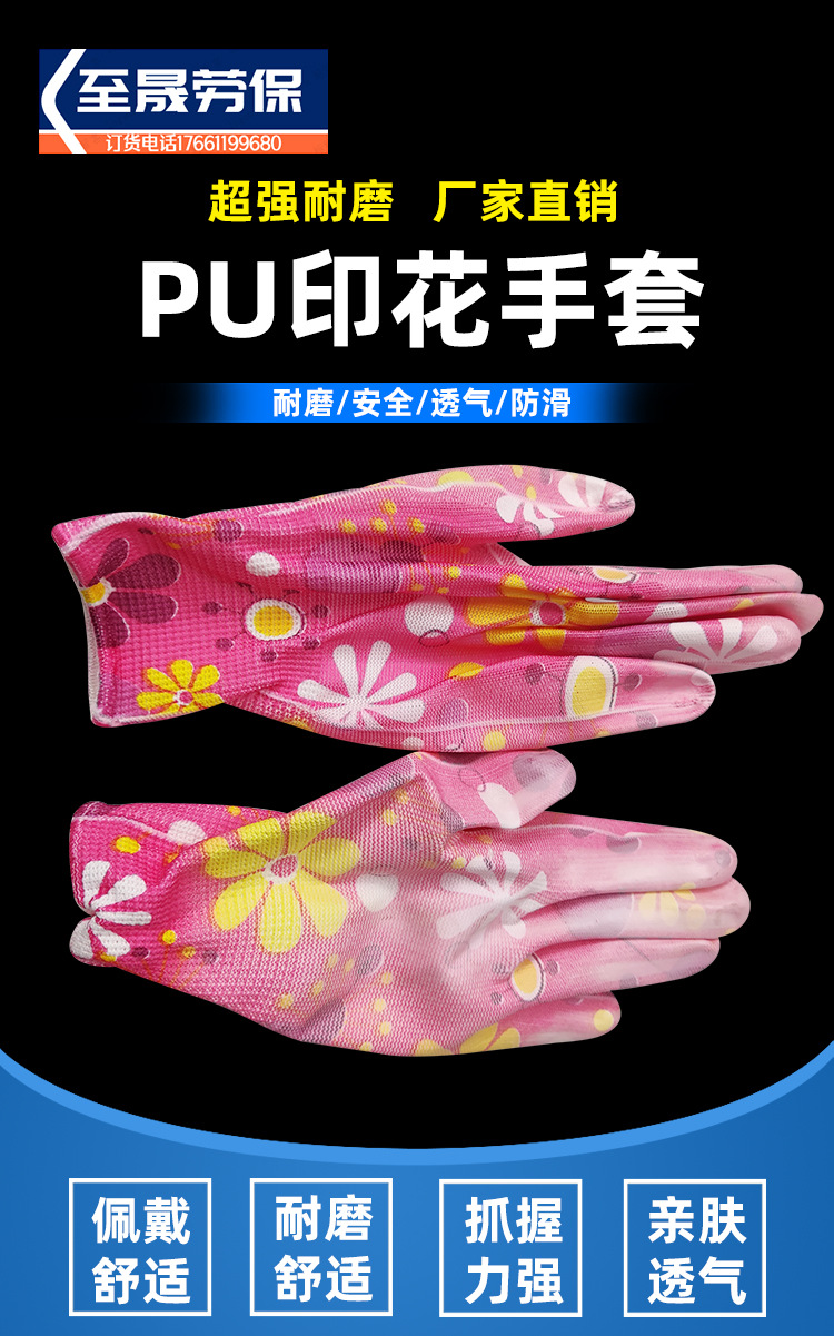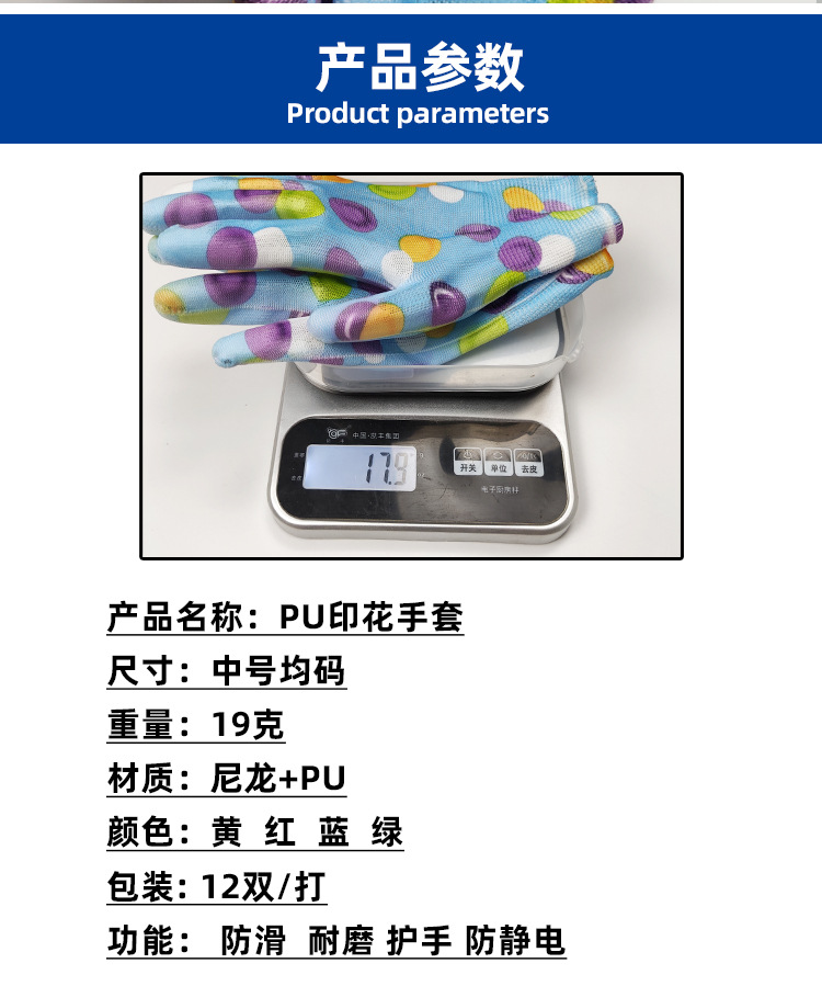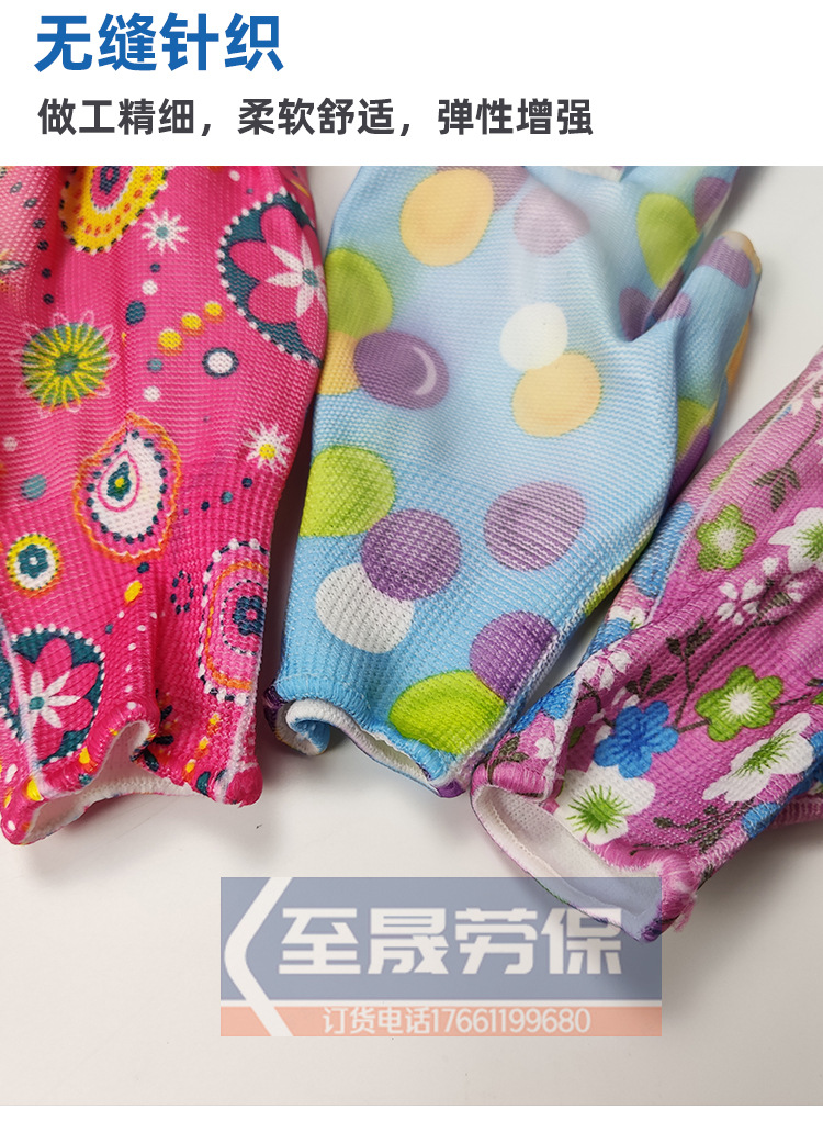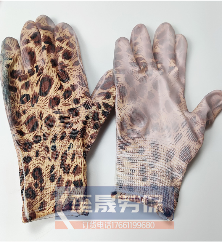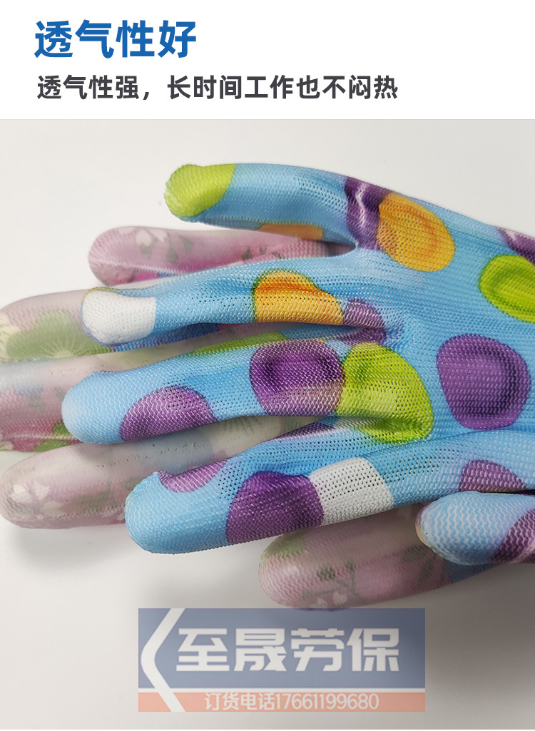 공장 직접 13 핀 나일론 다양한 색상으로 인쇄 된 여성 및 여성용 팜 코팅 장갑 나일론 Pu Palm 코팅 장갑스토어 가기