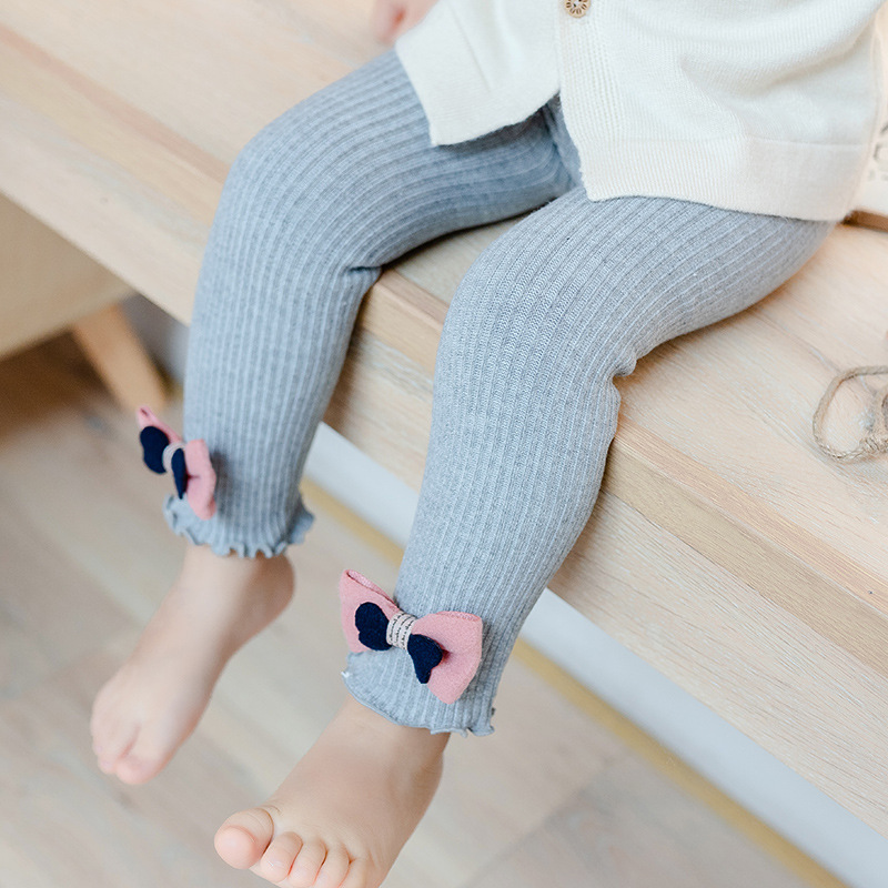 봄과 가을 아기 큰 PP 레깅스 세로 줄무늬 활 오픈 어린이 발목 길이 바지 여아 바지스토어 가기