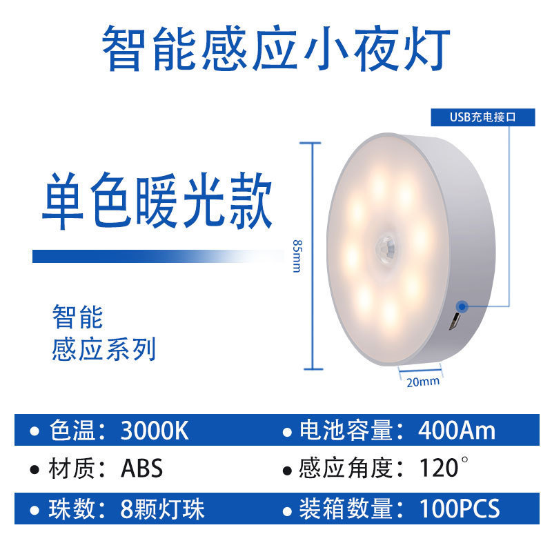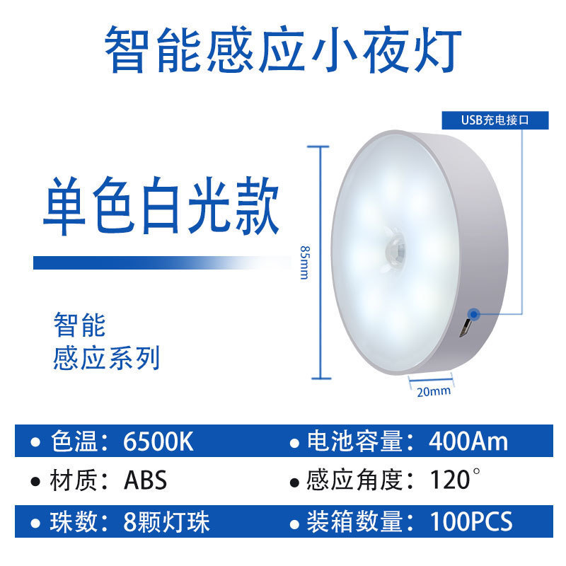 지능형 인체 유도 전구 에너지 절약 가정용 무선 자체 접착 충전식 야간 조명 기숙사 복도 조명 침대 옆 램프