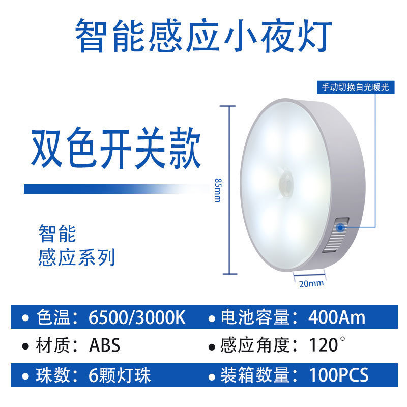 지능형 인체 유도 전구 에너지 절약 가정용 무선 자체 접착 충전식 야간 조명 기숙사 복도 조명 침대 옆 램프스토어 가기