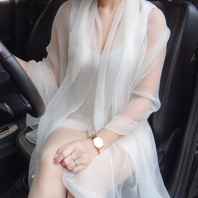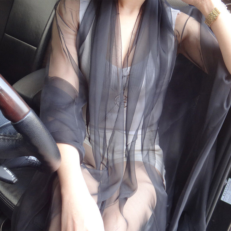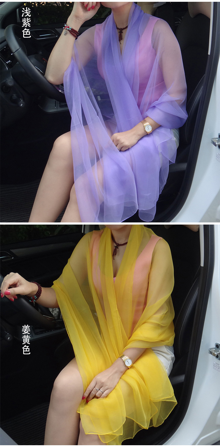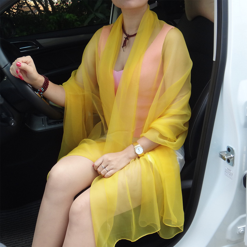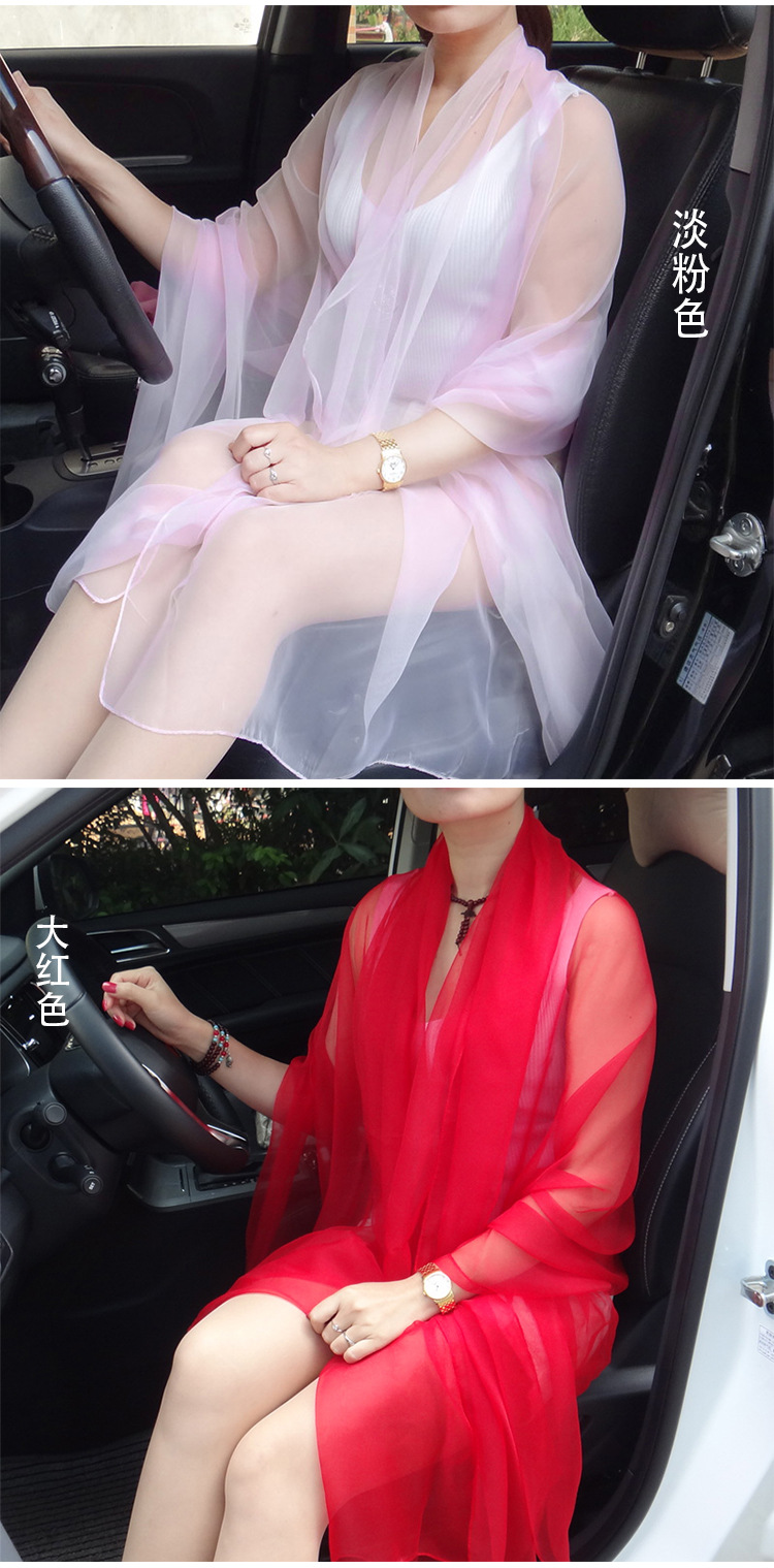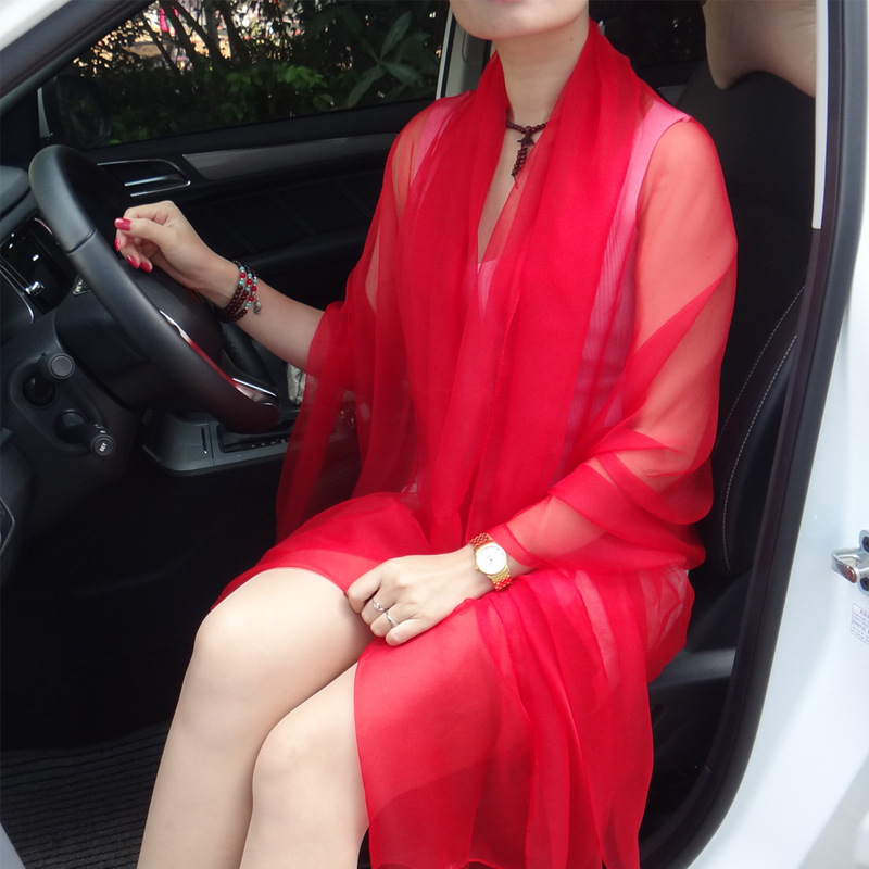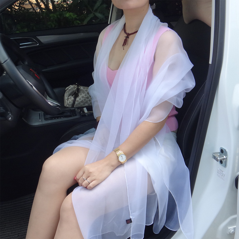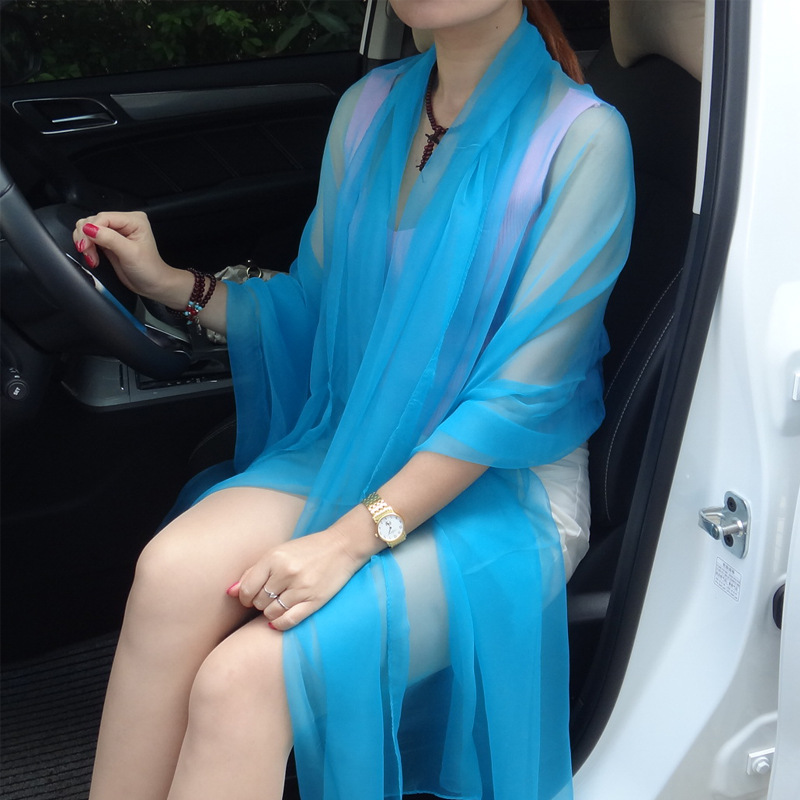 초박형 한국식 여름 아이스 실크 쉬폰 여성용 실크 스카프 에어컨 숄 자외선 차단제 스카프 해변 스카프 가을 댄스 실크 스카프스토어 가기