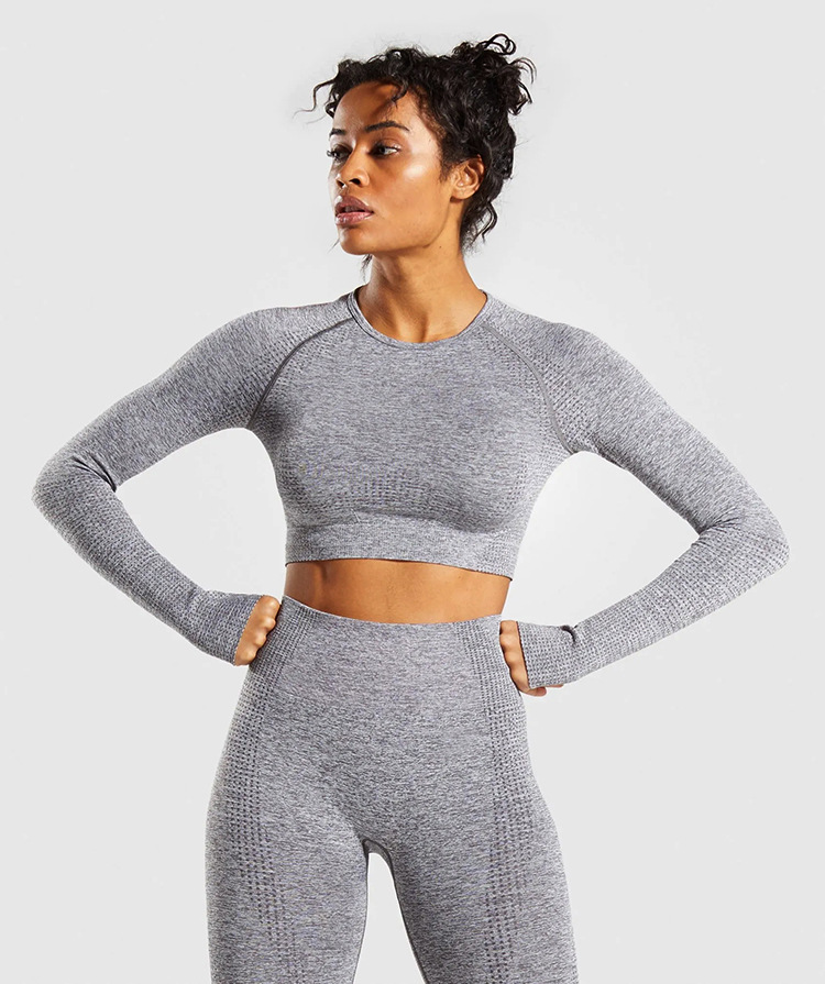 Zuo 유럽과 미국 피트니스 의류 속건 대외 무역 요가 트릭 누출 긴팔 탑 원활한 니트 여성용 긴팔 크로스스토어 가기