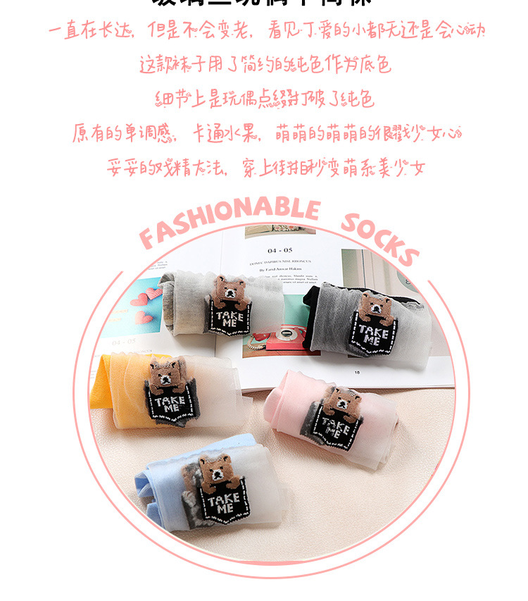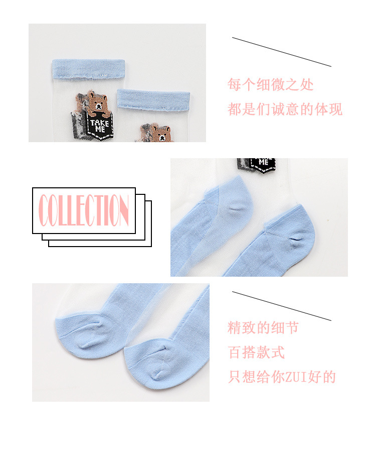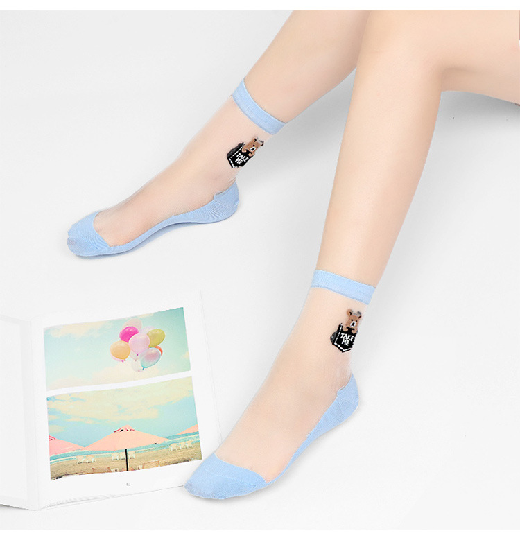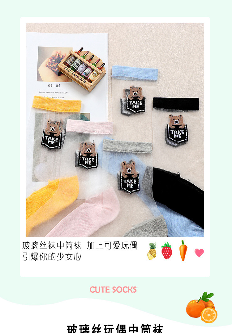 실크 스타킹 여성용 짧은 크리스탈 실크 투명 유리 실크 얇은 여름 면 바닥 미끄럼 방지 내구성 일본 귀여운 튜브 양말 도매스토어 가기