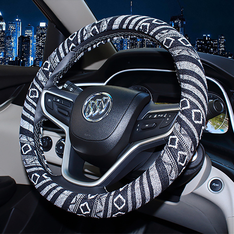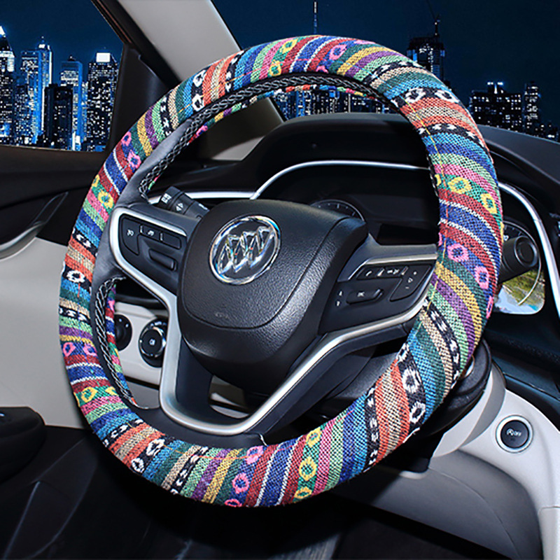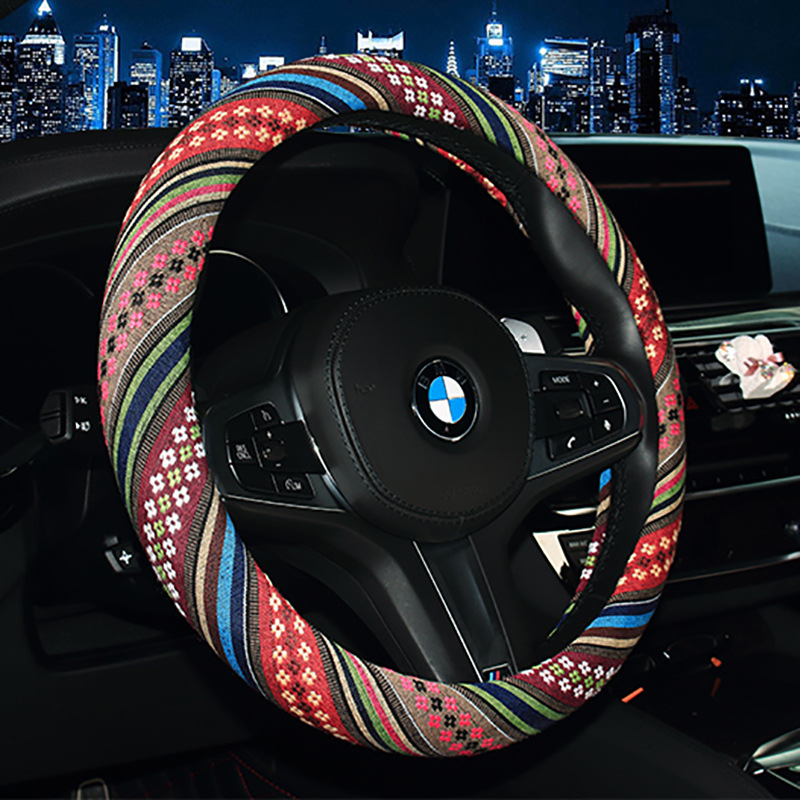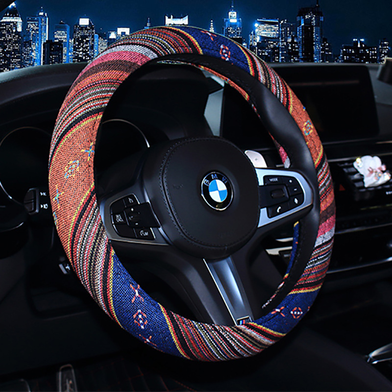 자동차 핸들 커버 사계절 유니버설 자동차 핸들 커버 린넨 내셔널 스타일 자동차 핸들 보호 커버 내셔널 스타일스토어 가기
