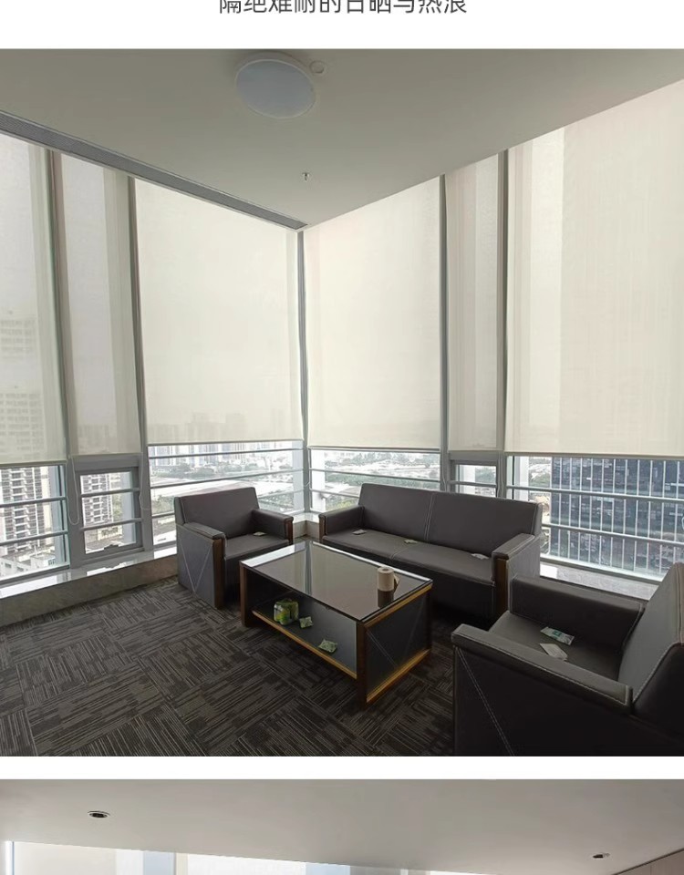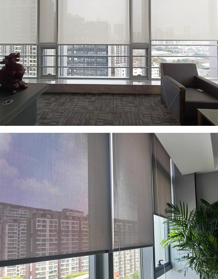 햇빛 방지 롤러 블라인드, 난연성 반차광 방수 및 투명 사무실 빌딩 롤러 블라인드, 차양 커튼스토어 가기
