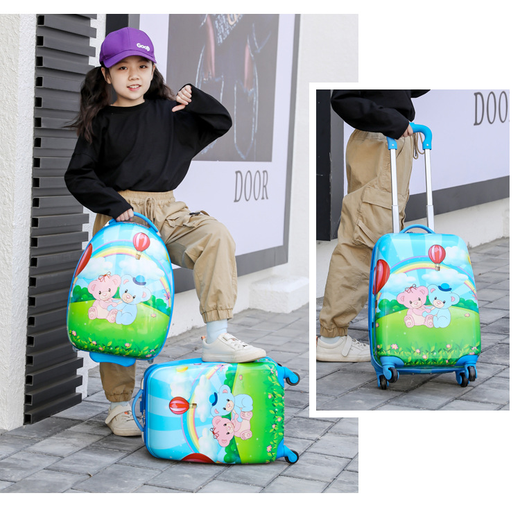 어린이 수하물 인쇄 16 인치 18 인치 만화 유니버설 휠 탑승 가방 은행 로고 어린이 트롤리 케이스스토어 가기