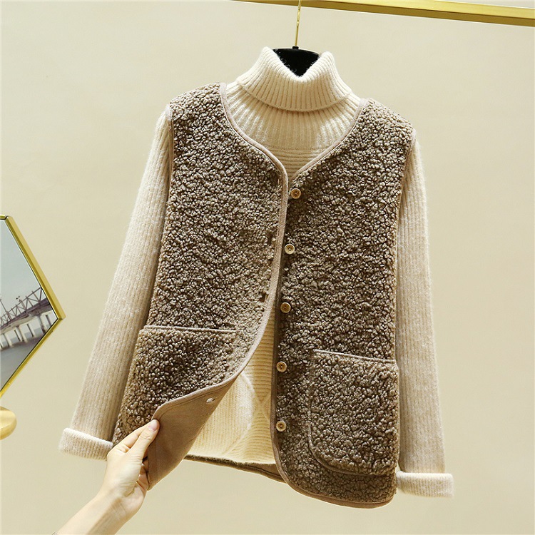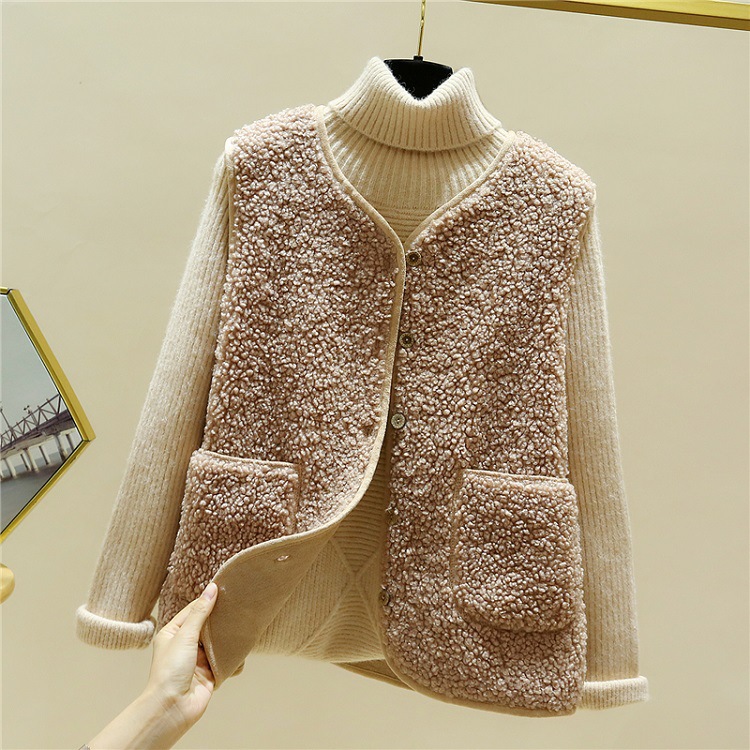 여성용 양털 플러시 조끼 2025 가을 겨울 짧은 한국 스타일 모피 일체형 다용도 조끼 조끼 재킷