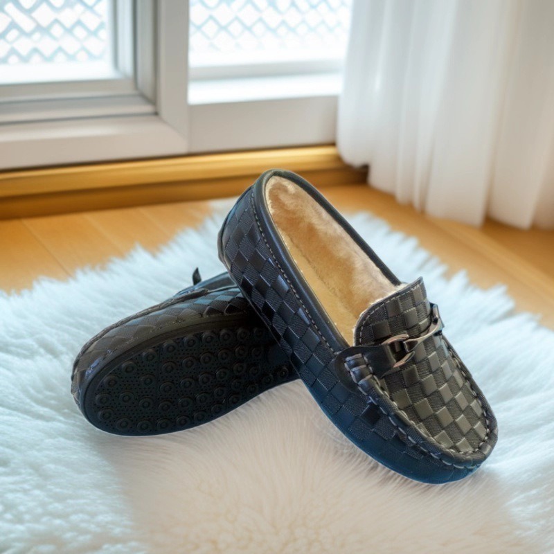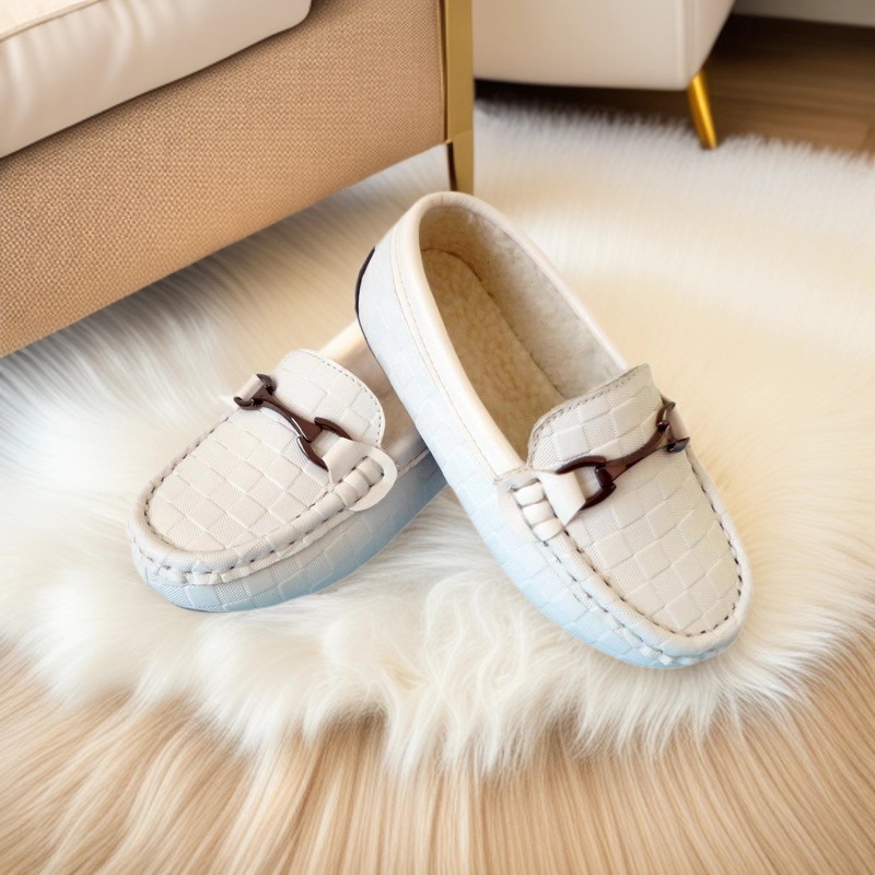 어린이용 면화 신발, 벨벳 안감의 콩 모양 신발, 소가죽 부드러운 밑창, 따뜻한 가정용 유아 겨울 스노우 부츠, 면화 안감 학생 신발스토어 가기