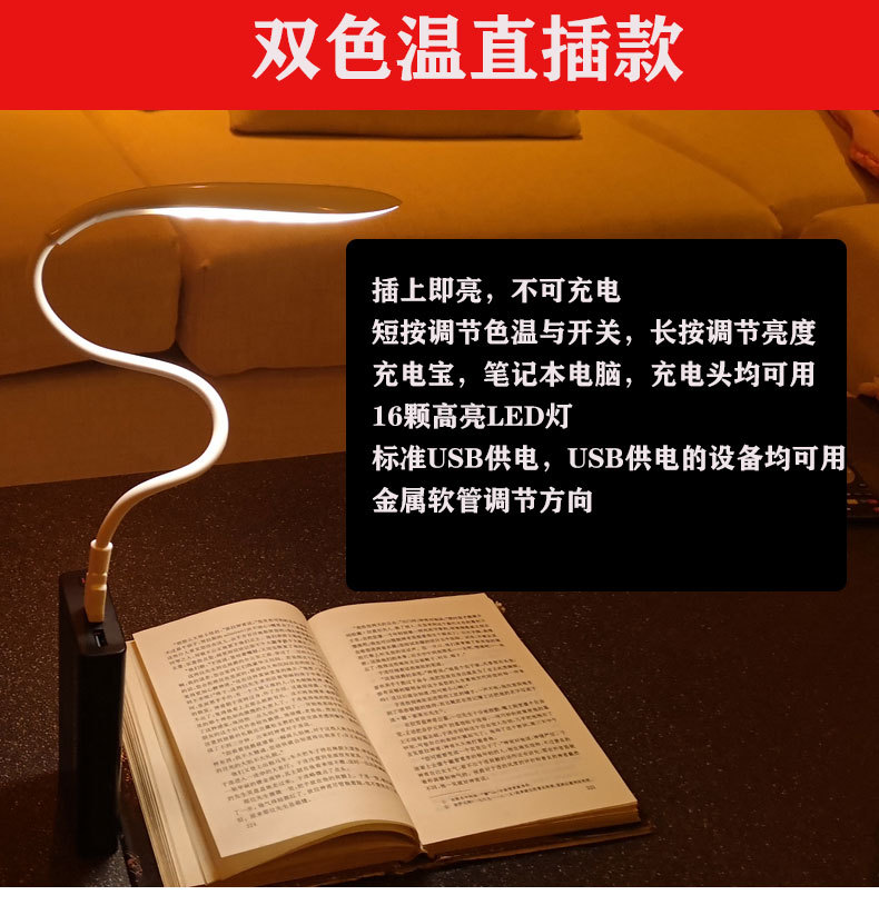 LED 테이블 램프 USB 직접 연결형 보조배터리 노트북 야간 낚시등 기숙사 침대 옆 야간등 밝기 조절 가능 휴대용