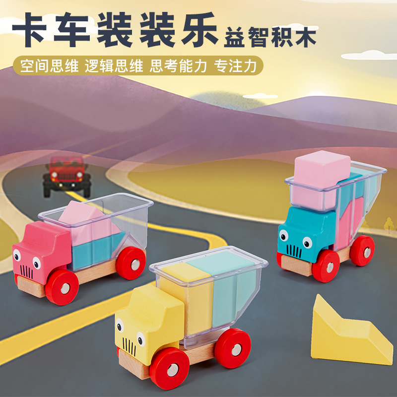 나무 3d 입체 트럭 적재 큰 입자 조립 빌딩 블록 교육 공간 사고 논리 어린이 장난감스토어 가기