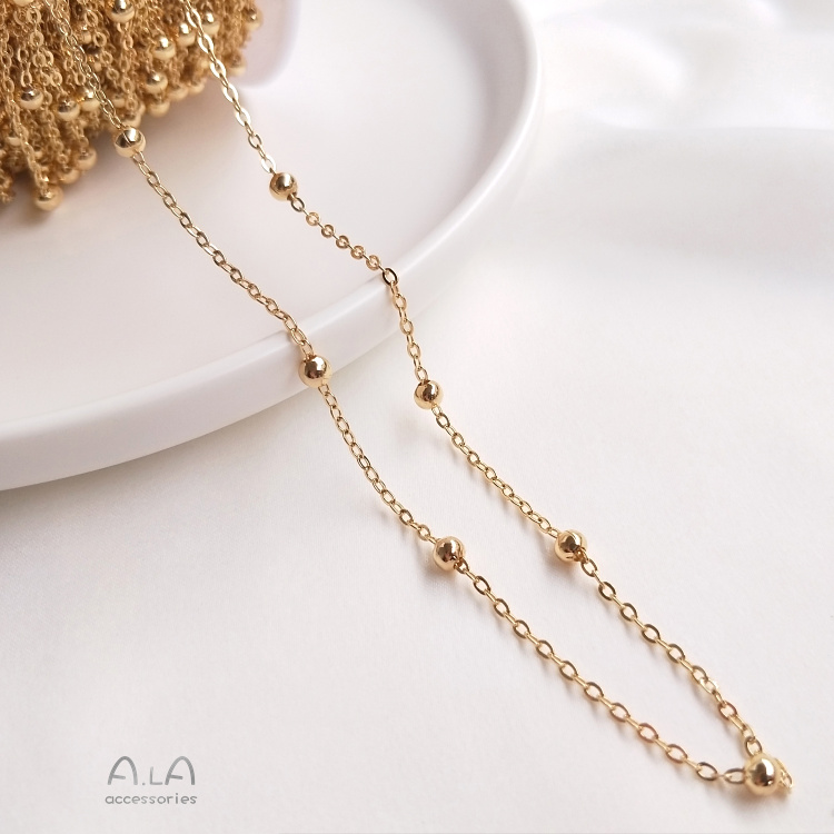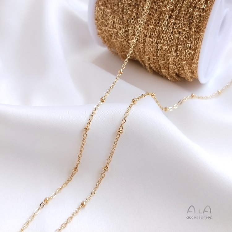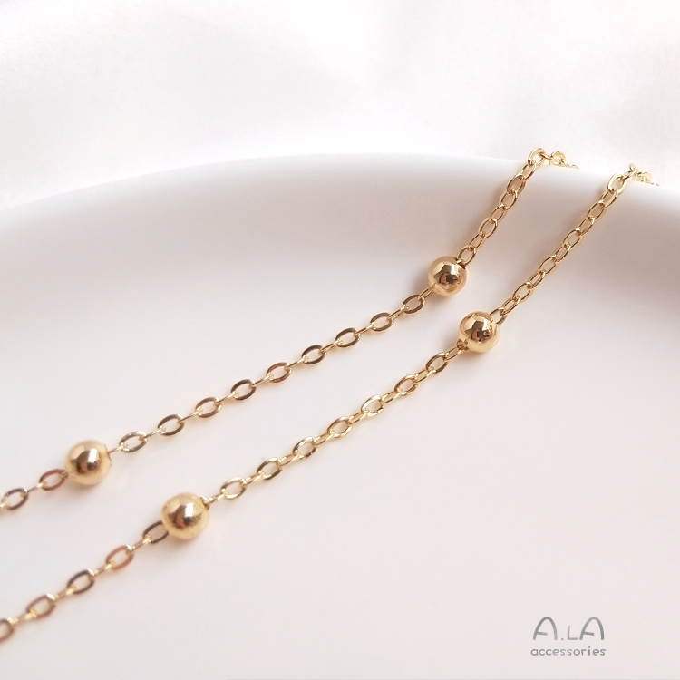 14K 골드 컬러 유지 체인 플랫 O 클립 비드 체인 비드 체인 반제품 체인 DIY 수제 팔찌 목걸이 소재