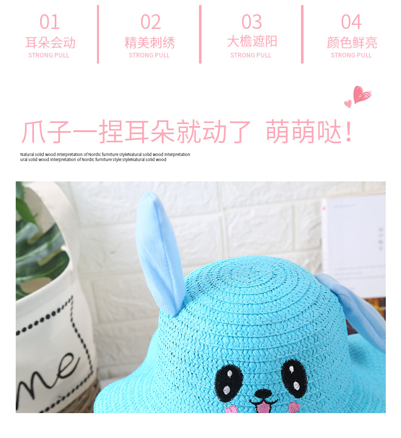 어린이 차양 모자 남성과 여성을위한 여름 자외선 차단제 밀짚 모자 귀를 움직이는 귀엽고 재미있는 모자 흔들림이있는 토끼 모자