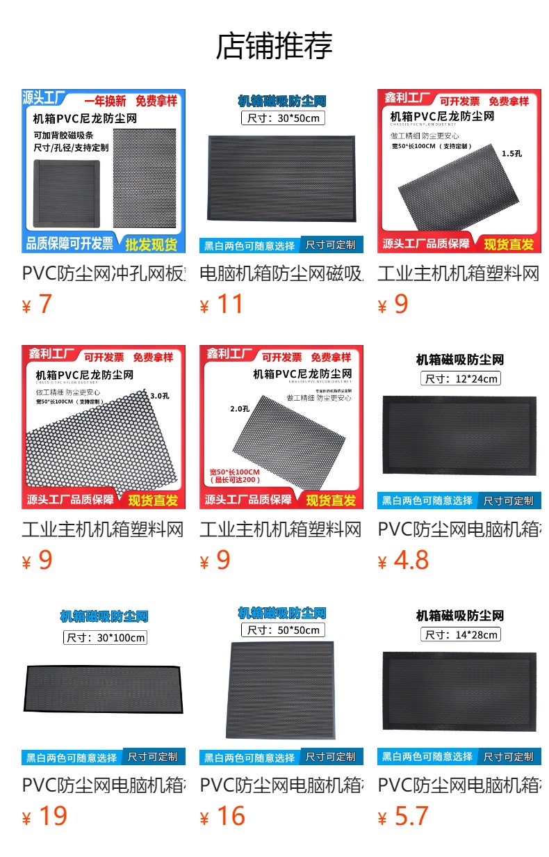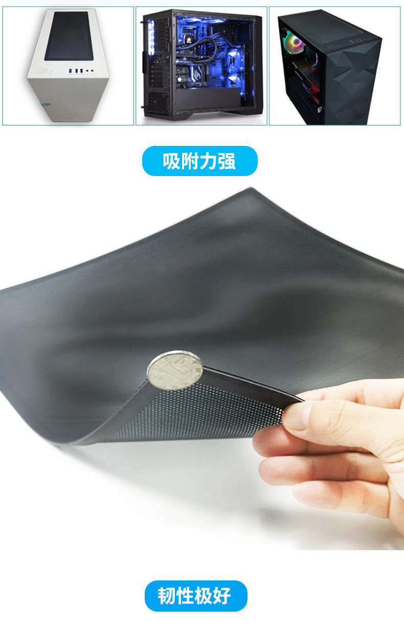 PVC 방진 메쉬 컴퓨터 케이스 캐비닛 펀칭 메쉬 플라스틱 메쉬 필터 커버 14x28cm 마그네틱 스트립 50x50cm스토어 가기