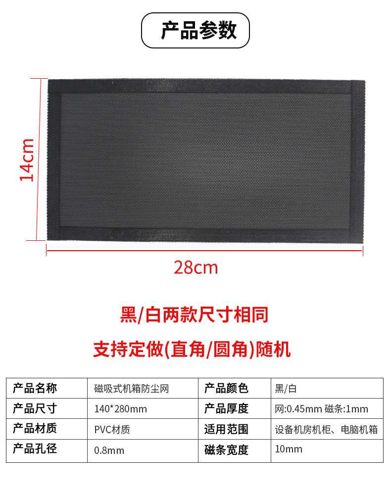 PVC 방진 메쉬 컴퓨터 케이스 캐비닛 펀칭 메쉬 플라스틱 메쉬 필터 커버 14x28cm 마그네틱 스트립 50x50cm