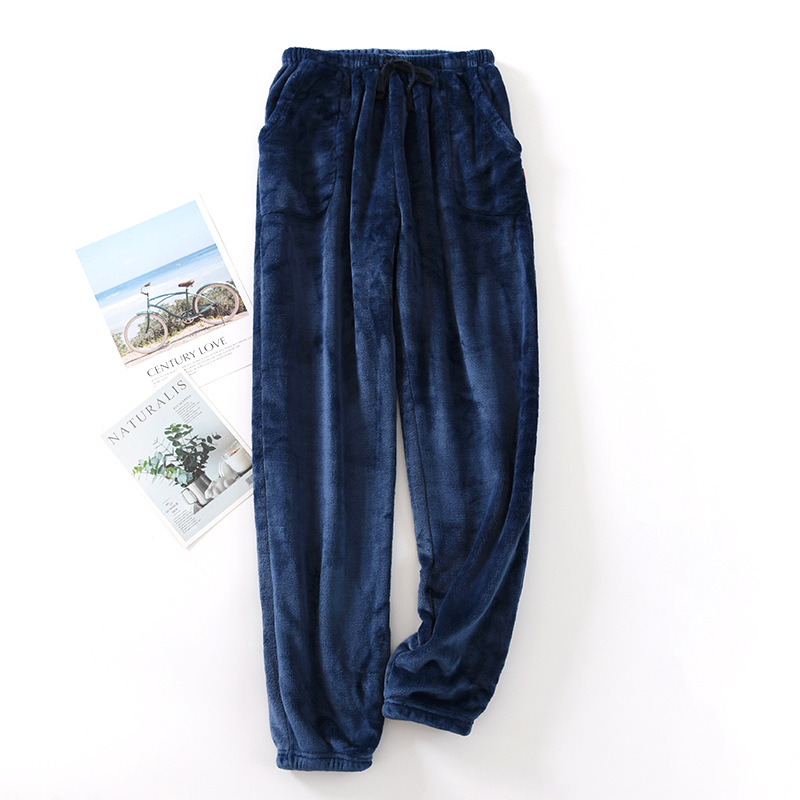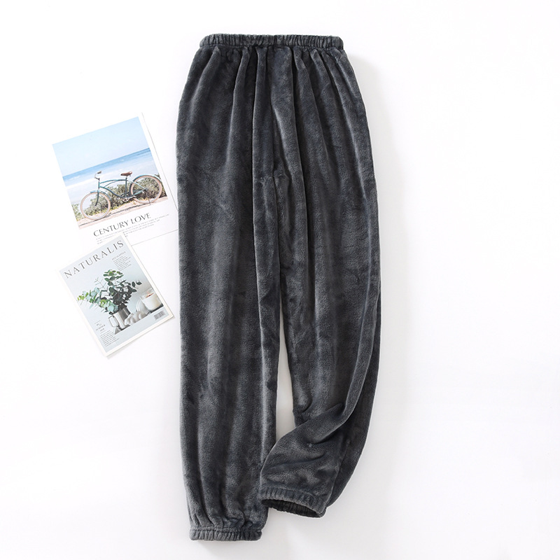 플란넬 겨울 파자마 바지 남성용 두꺼운 따뜻한 바지 싱글 피스 겉옷을 입고 산호 양털 홈 바지 바지 바지