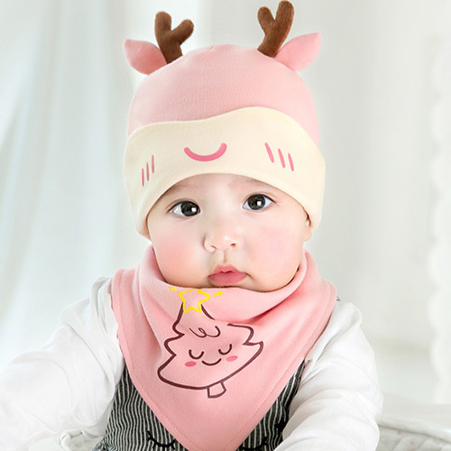 • 1102-수면 새끼 사슴-핑크 모자 + 스카프