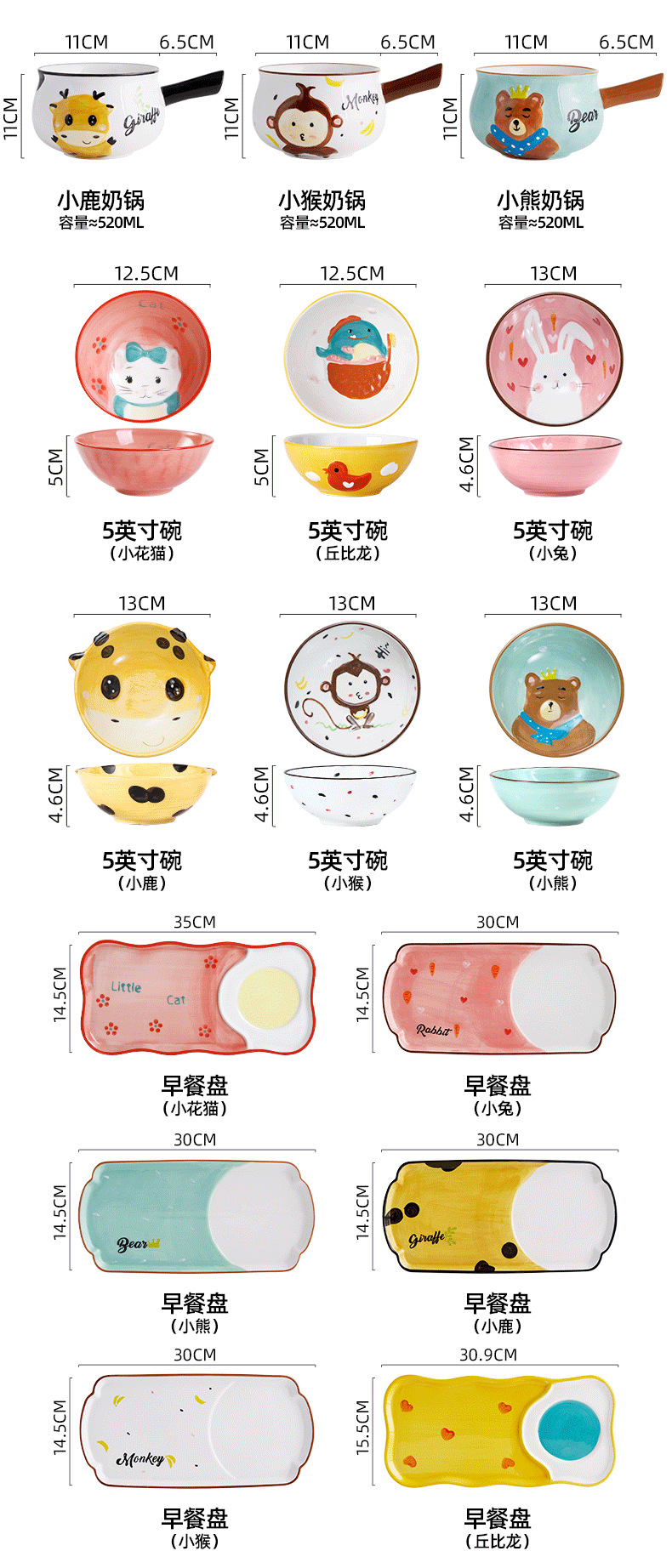 【品名】:陶瓷创意手绘卡通小奶锅 9色