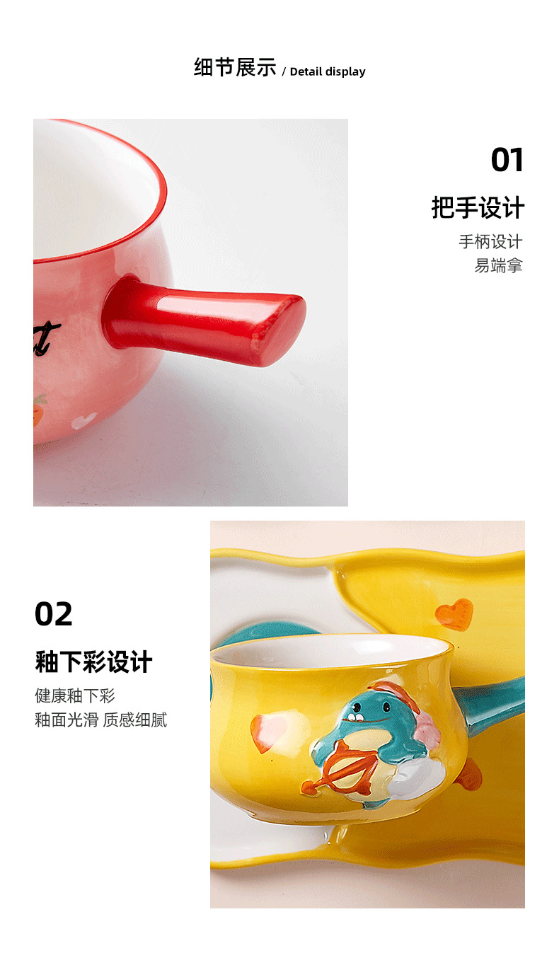 【推荐】:创意手把造型,可做装饰早餐碗,麦片碗,牛奶碗,甜品碗等等,实用的同时也是一道美丽的风景,作为情人节,儿童节礼品,各种回礼也是很不错的!