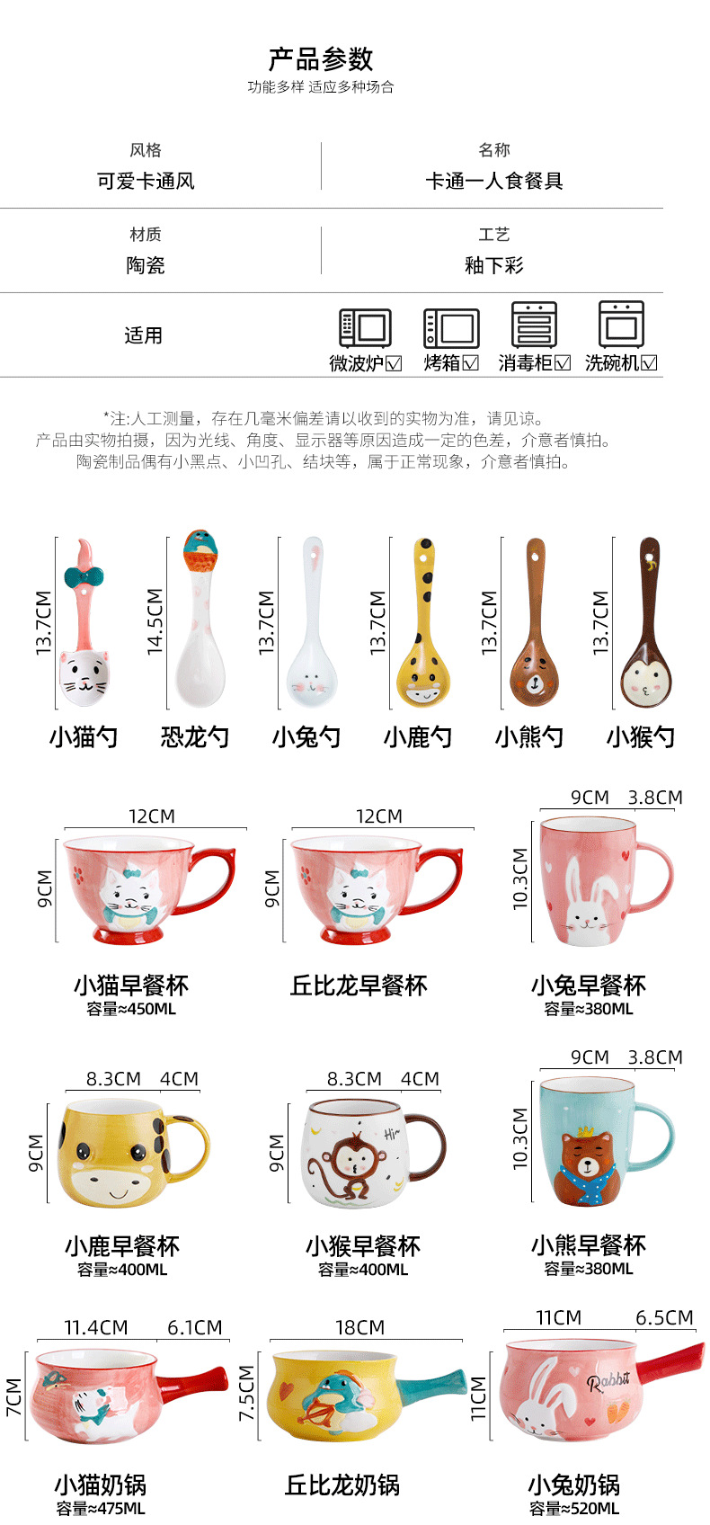 【尺寸】:口径11.4厘米,加手把宽度17.5cm, 高7.3厘米,容量约500ML,具体如下描述