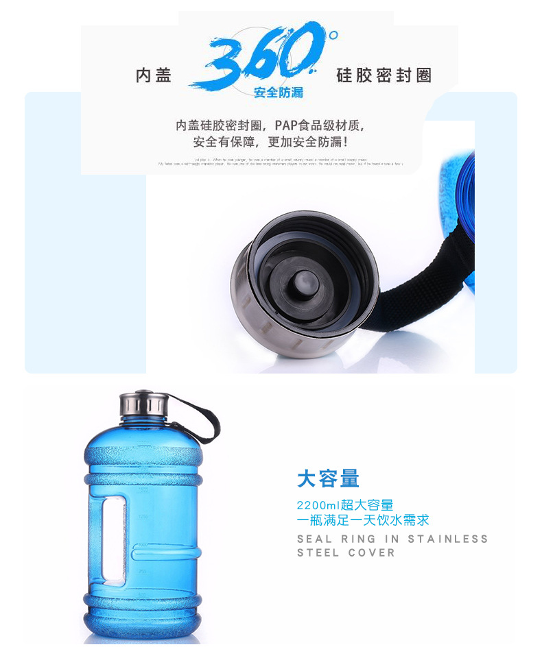 국경을 넘는 2.2L 대용량 야외 피트니스 스포츠 물병, 멋진 디자인의 피트니스 톤톤 버킷