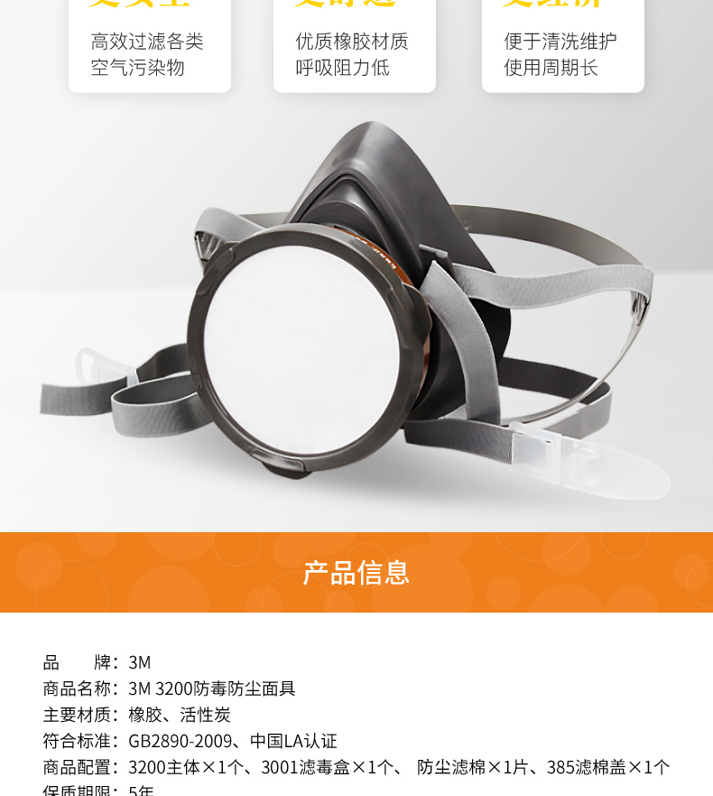3m 방독면 도장 특수 3200 방진 표면 화학 가스 호흡 황갈색 산업용 방진 후드
