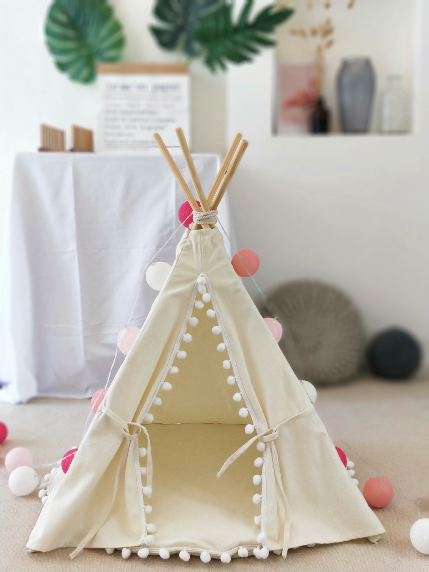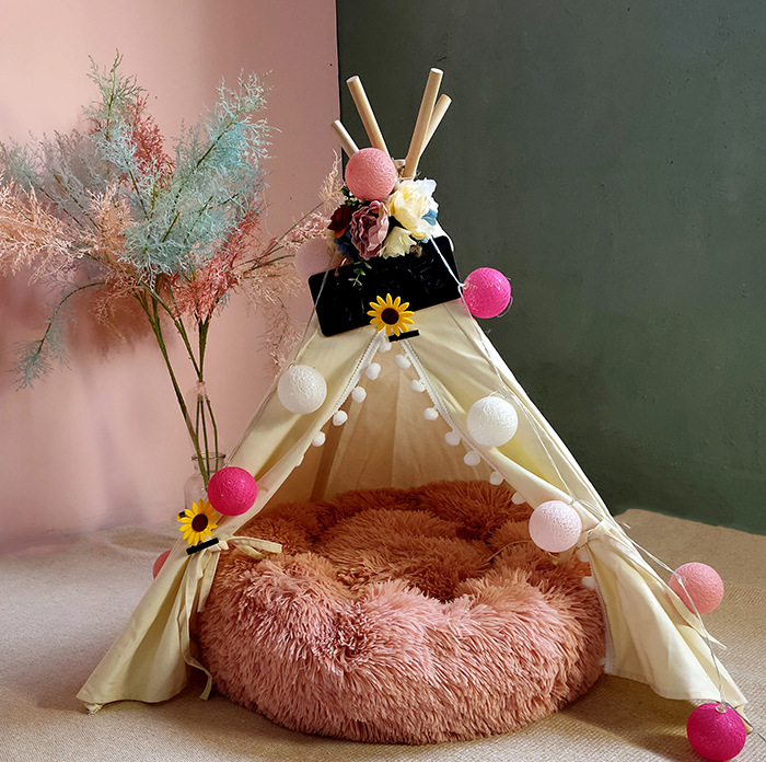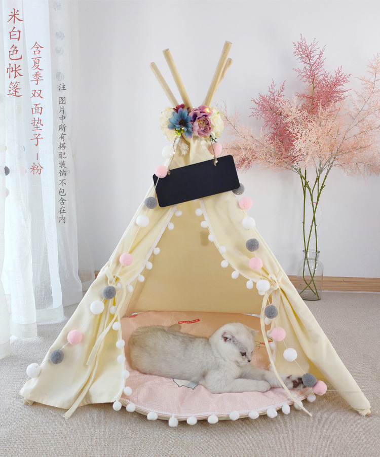 • 아이보리-애완동물 텐트-싱글 쿠션 포함