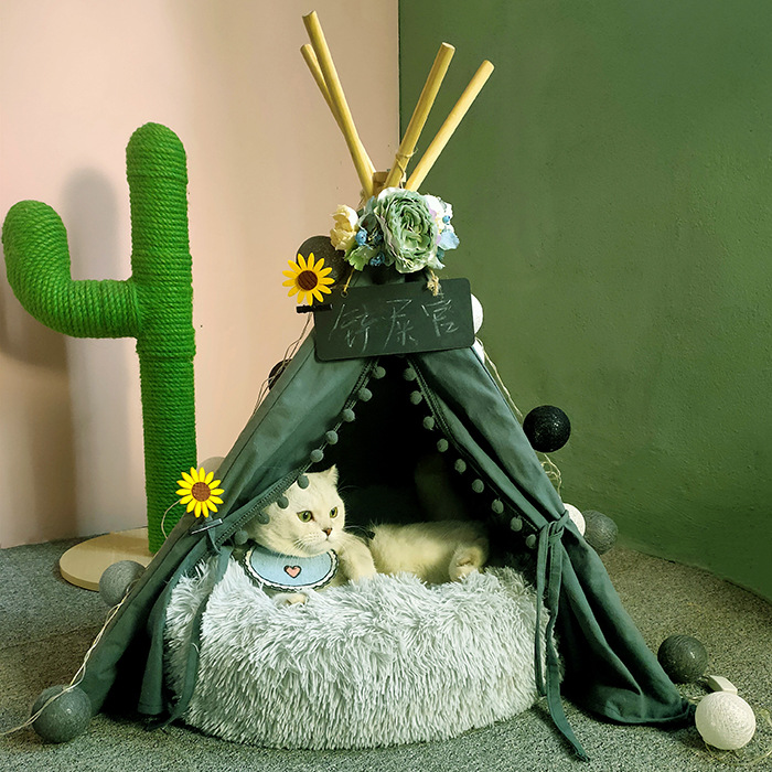 • 다크 그린-애완 동물 텐트-더블 쿠션