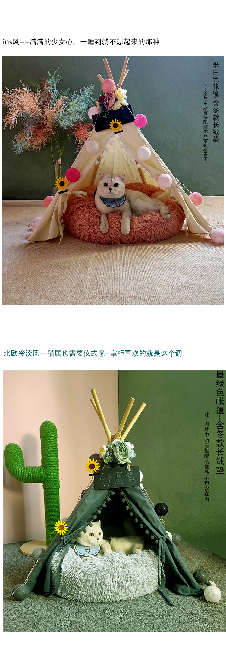 • 다크 그린-애완 동물 텐트-싱글 쿠션 포함