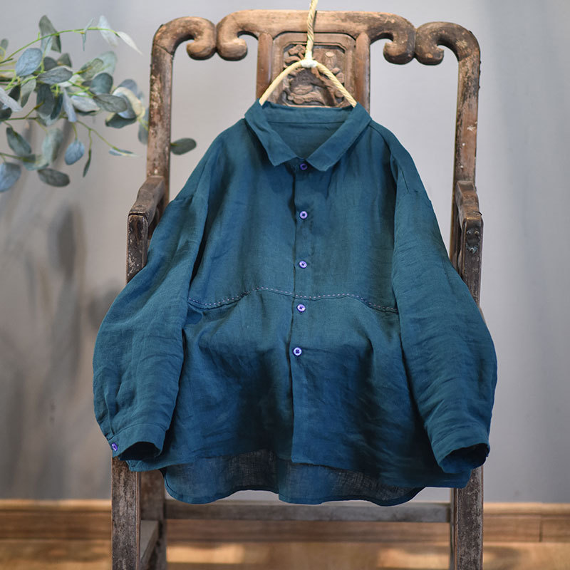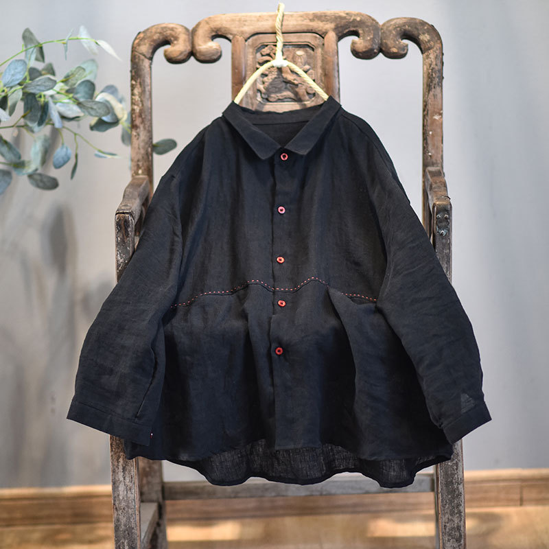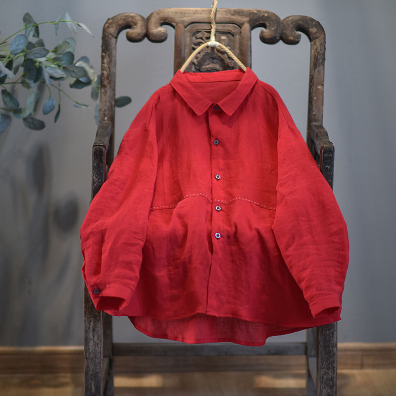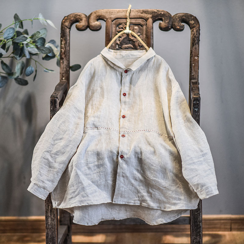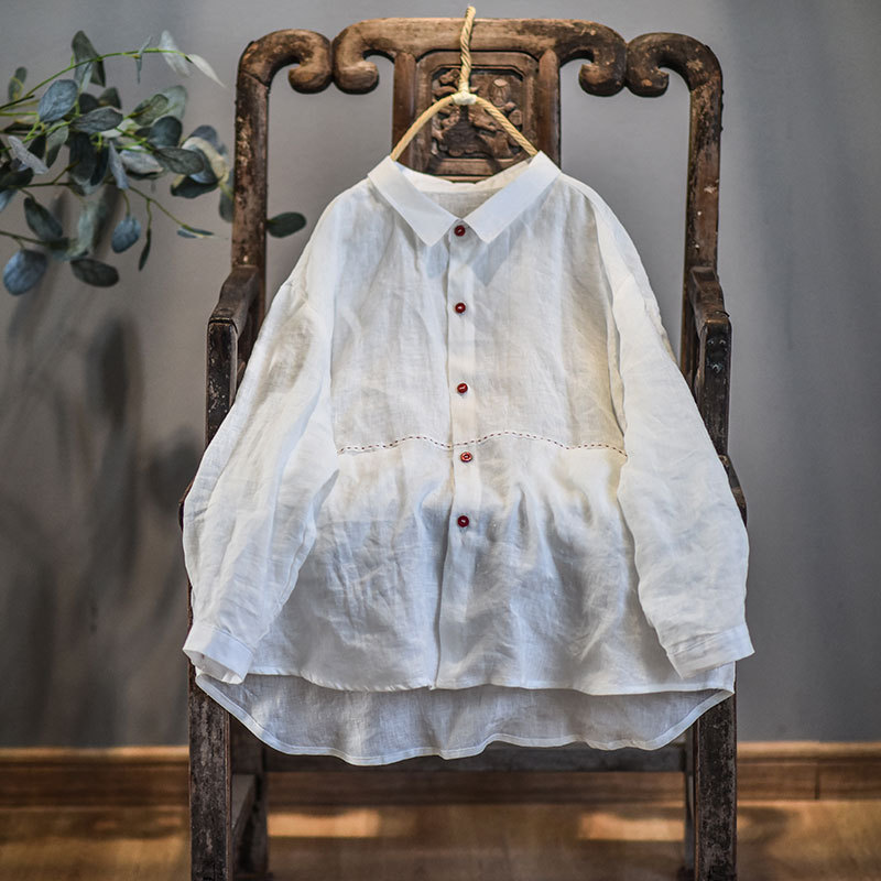 인쇄되지 않은/오리지널 린넨 사계절 셔츠 여성용 연령 감소 캐주얼 숄더 슬리브 핸드 스티치 자수 셔츠 여성용 셔츠스토어 가기