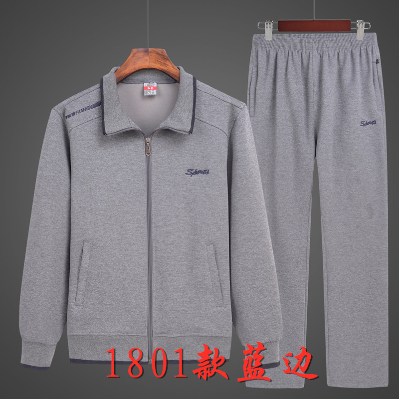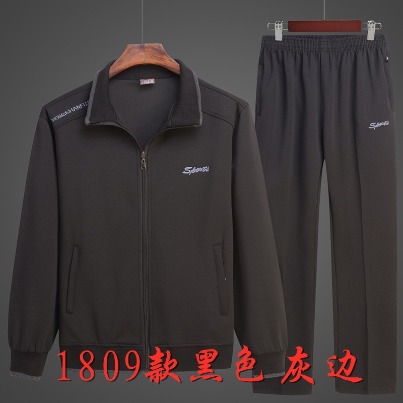 중년 및 노인 스포츠 세트 남성용 봄과 가을 스포츠웨어 노인 투피스 세트 할아버지와 아빠 레저 투피스 세트