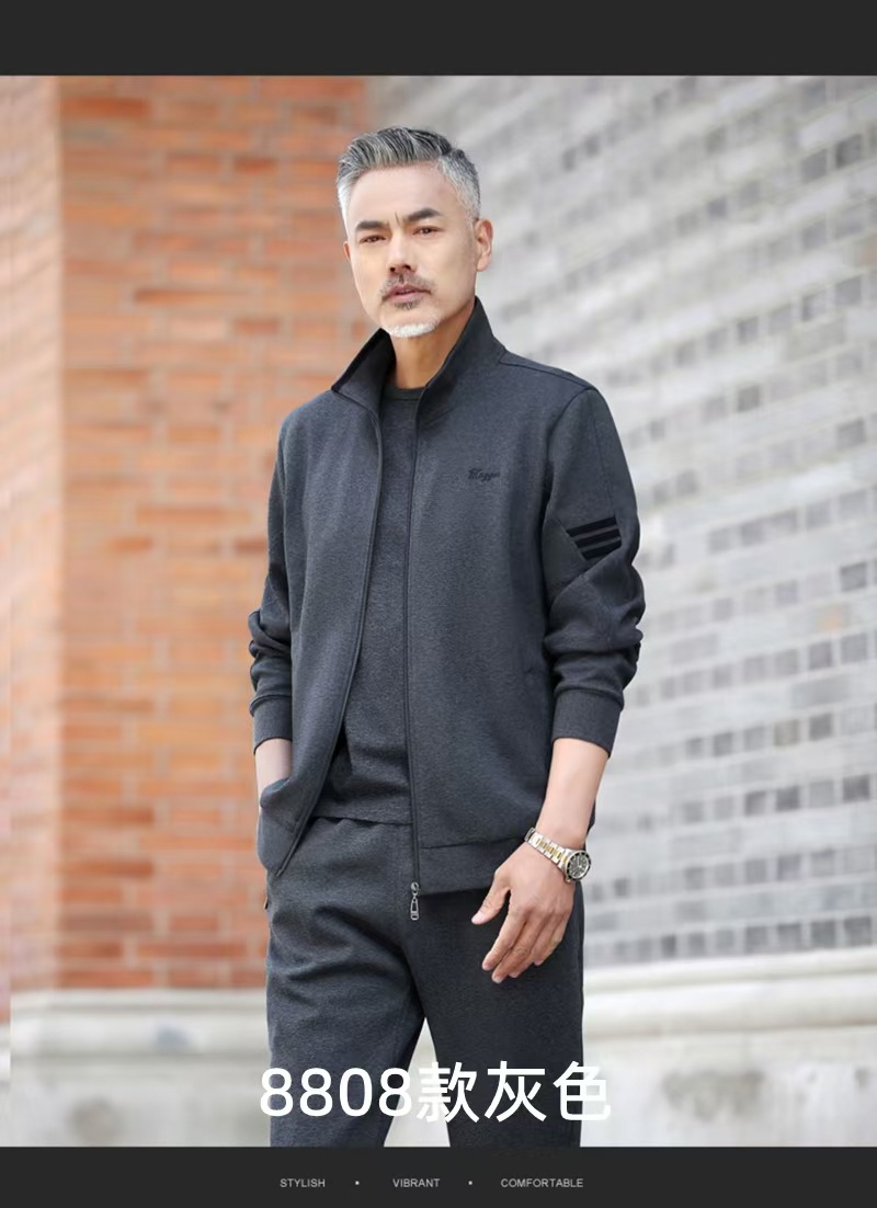 중년 및 노인 스포츠 세트 남성용 봄과 가을 스포츠웨어 노인 투피스 세트 할아버지와 아빠 레저 투피스 세트스토어 가기