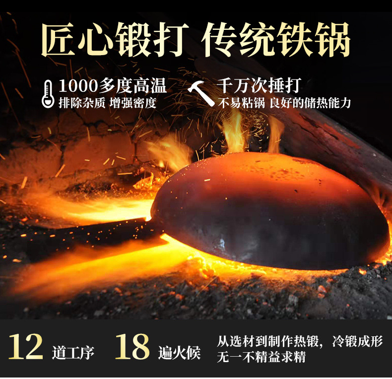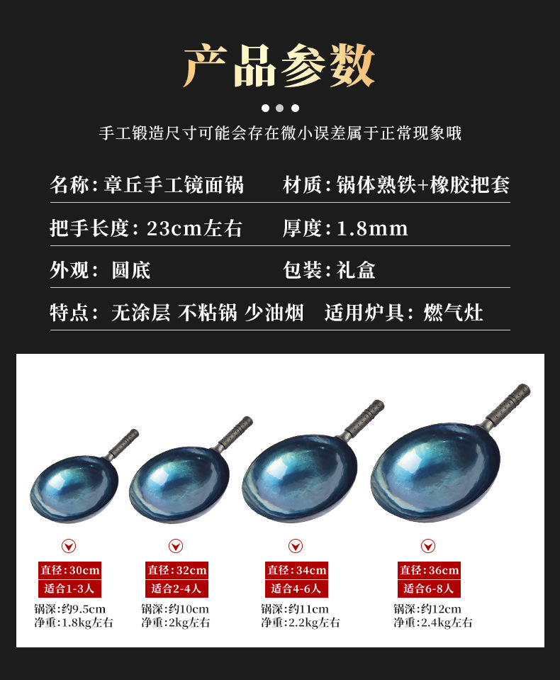 Zhangqiu 손으로 만든 철 냄비 마스터 거울 주철 냄비 가정용 구식 비 스틱 냄비 코팅되지 않은 가스 스토브 거울 냄비스토어 가기