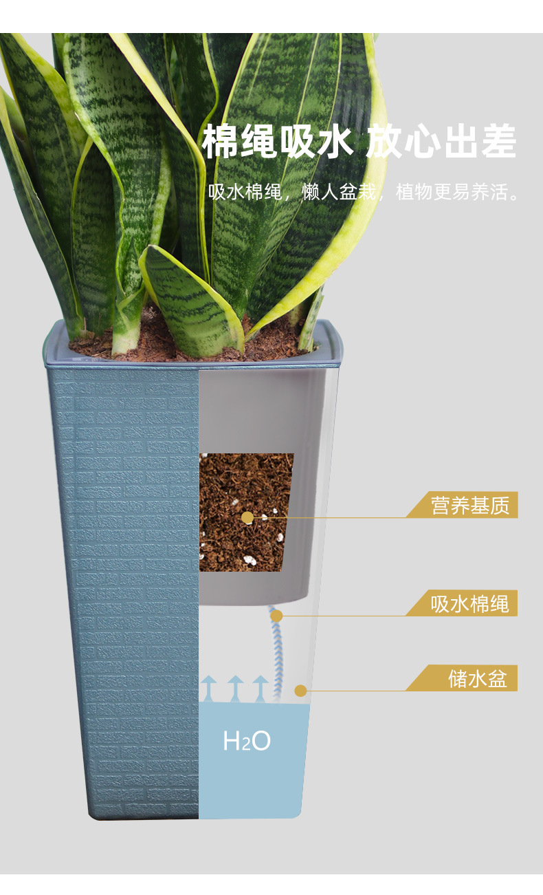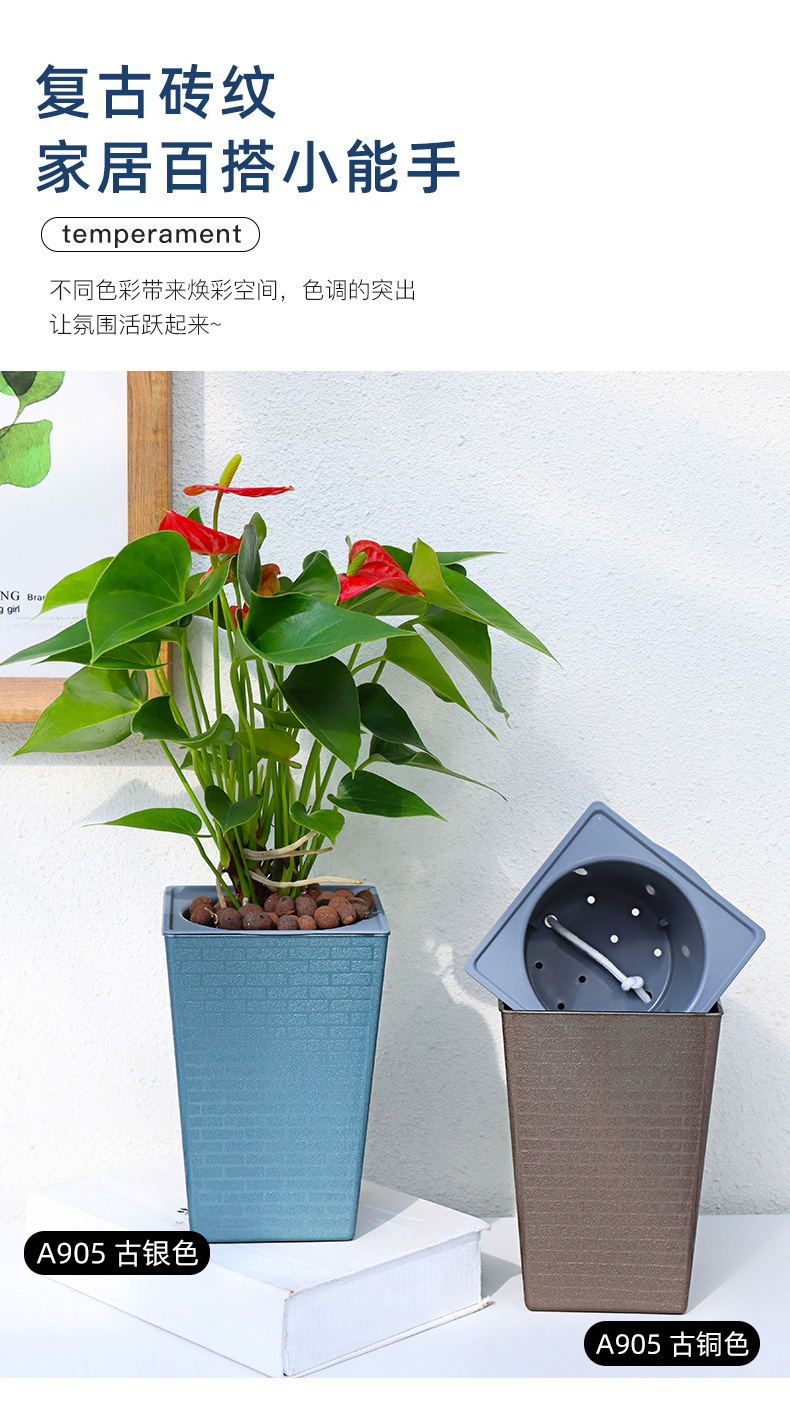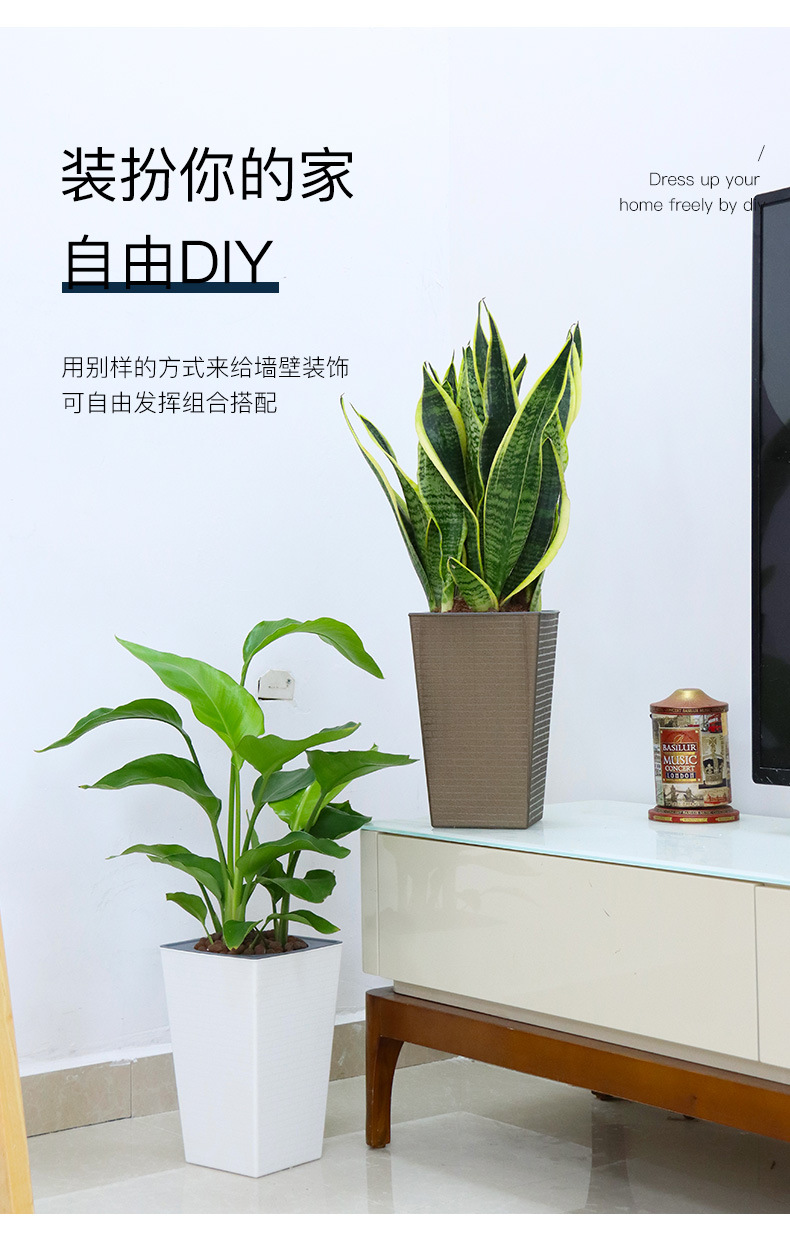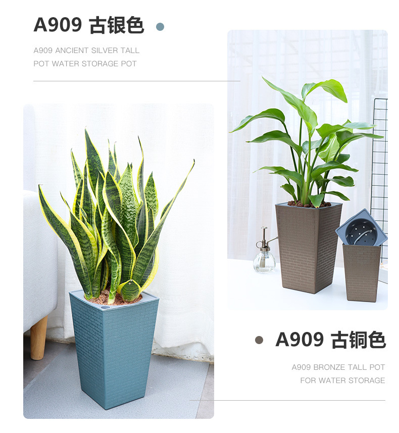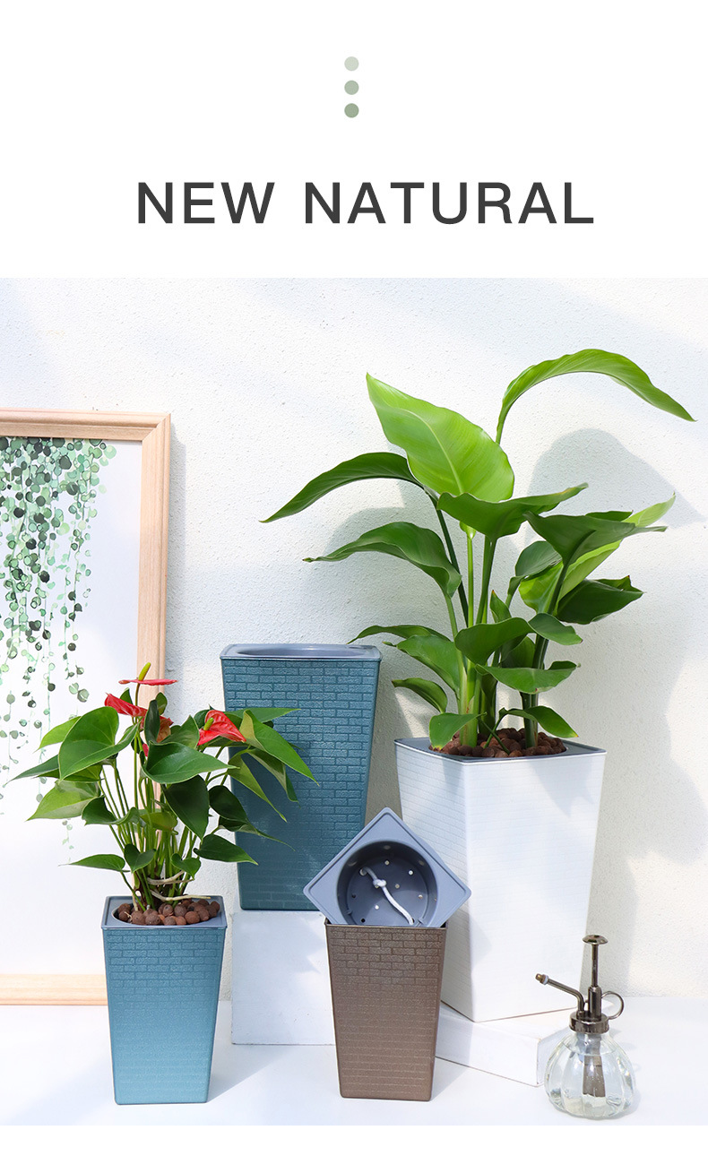 Olinze 화분, 높이가 높은 플라스틱 화분, 자체 흡수식 게으른 화분, 심플하고 세련된 화분, 가정용 수지 화분