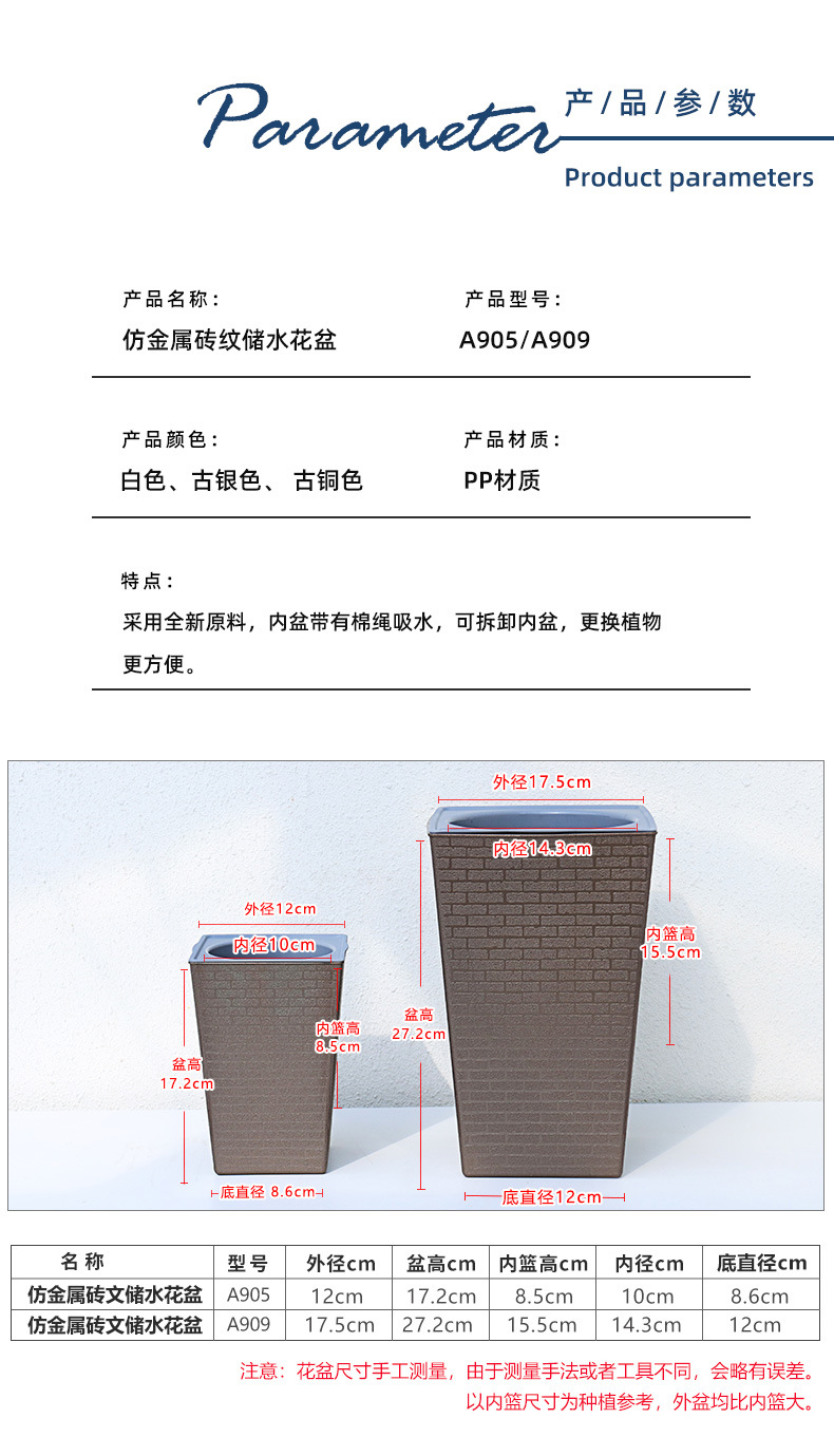 • 앤틱 실버 [물 주입구가 없는 작은 사이즈] A905 벽돌무늬 톨 화분
