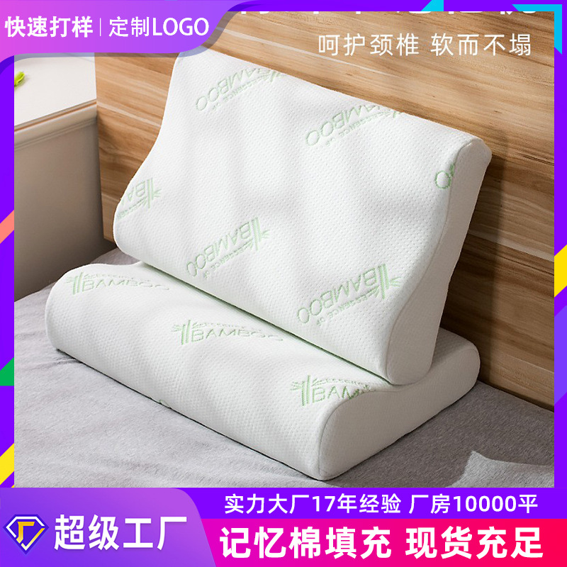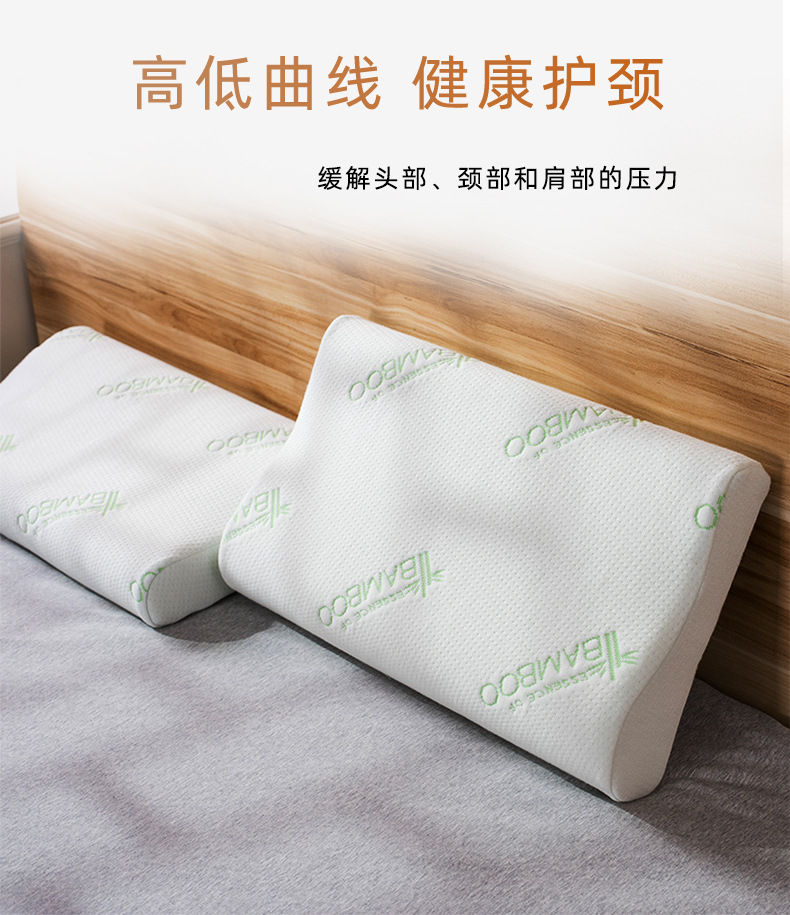 느린 반발 목 보호 메모리 베개 우주 메모리 폼 목 보호 베개 물결 모양 베개심 대나무 섬유 경추 베개 커버