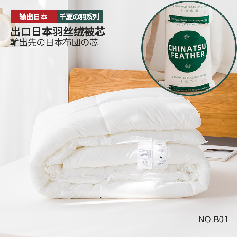 填充物精选自日本恒川精练,1.5D和3.5D充绒饱满填充,既保证了被芯的柔软,又保证了被芯的支撑度,使被芯饱满充绒,回弹充分。